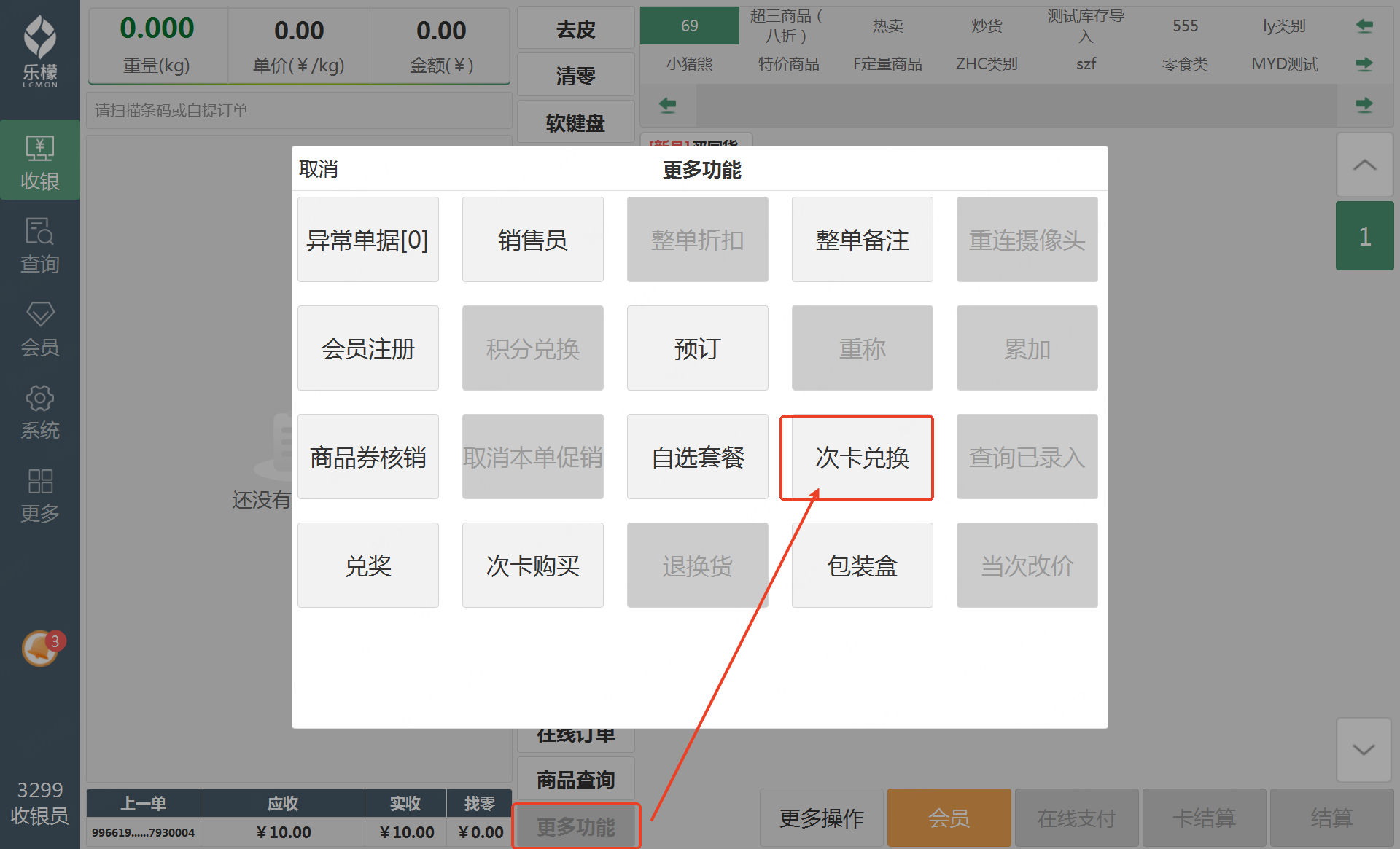 次卡兑换 | 未勾选的情况下,不允许在前台进行次卡兑换 |