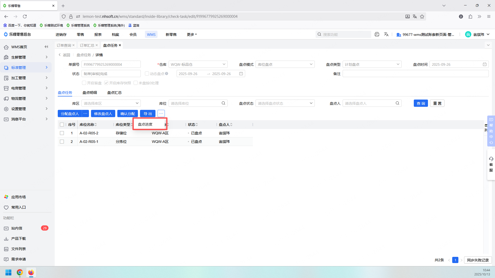 4、WMS-盘点任务:盘点进度