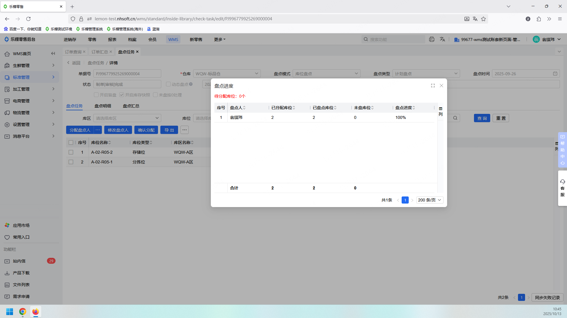 乐檬WMS - 盘点任务增加“查看盘点进度”