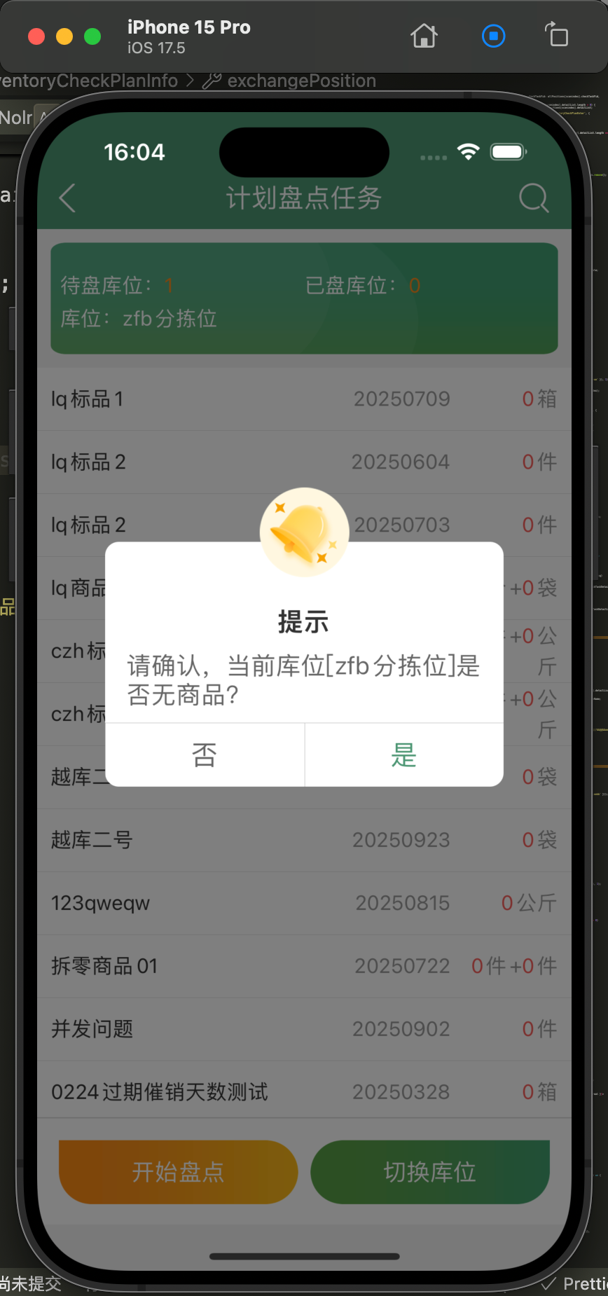 2、仓配App-盘点:增加“当前库位无库存商品”校验
