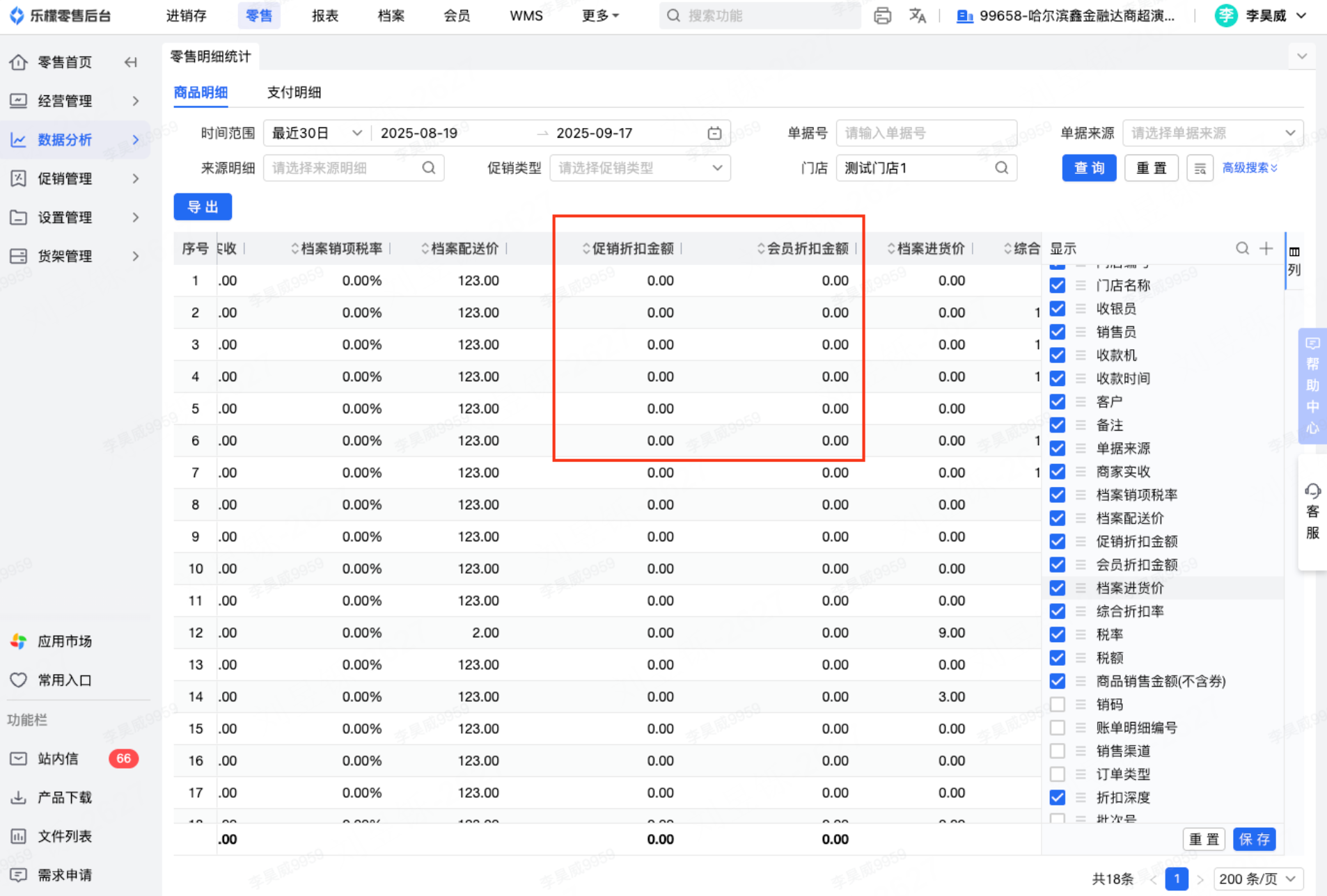 乐檬零售 - 零售明细统计增加促销折扣金额、会员折扣金额