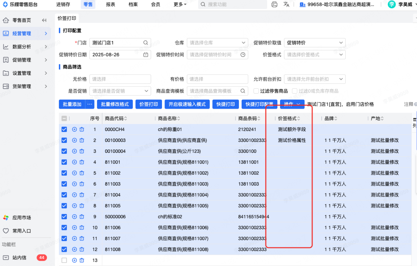 本次系统升级迭代,对价签打印功能进行优化,主要功能包括:
