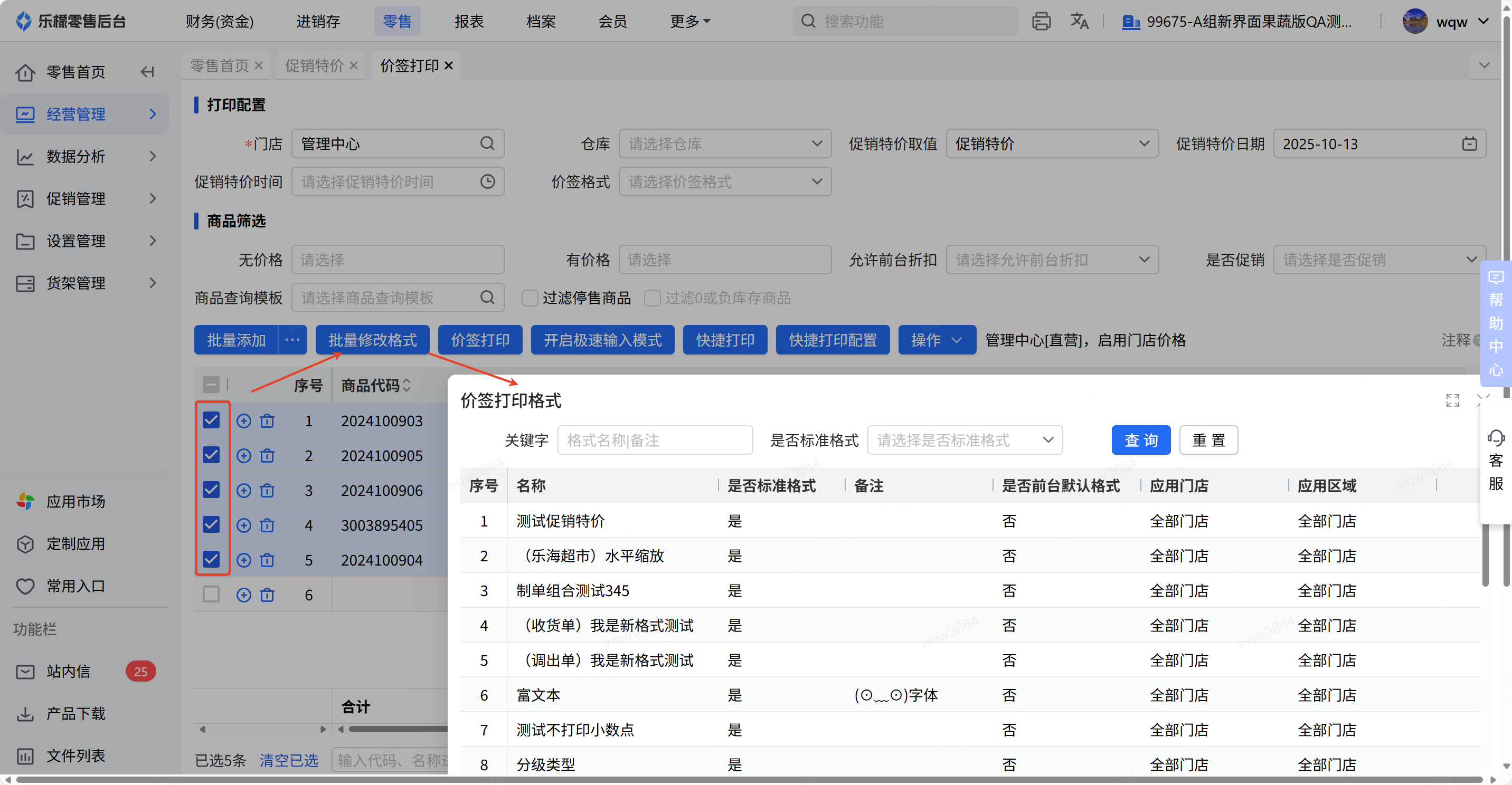 1、当前仅支持格式尺寸一致的不同格式打印,若选择格式不同,会按照第一个格式尺寸打印,会造成使用其他尺寸格式的价签打印结果偏差
