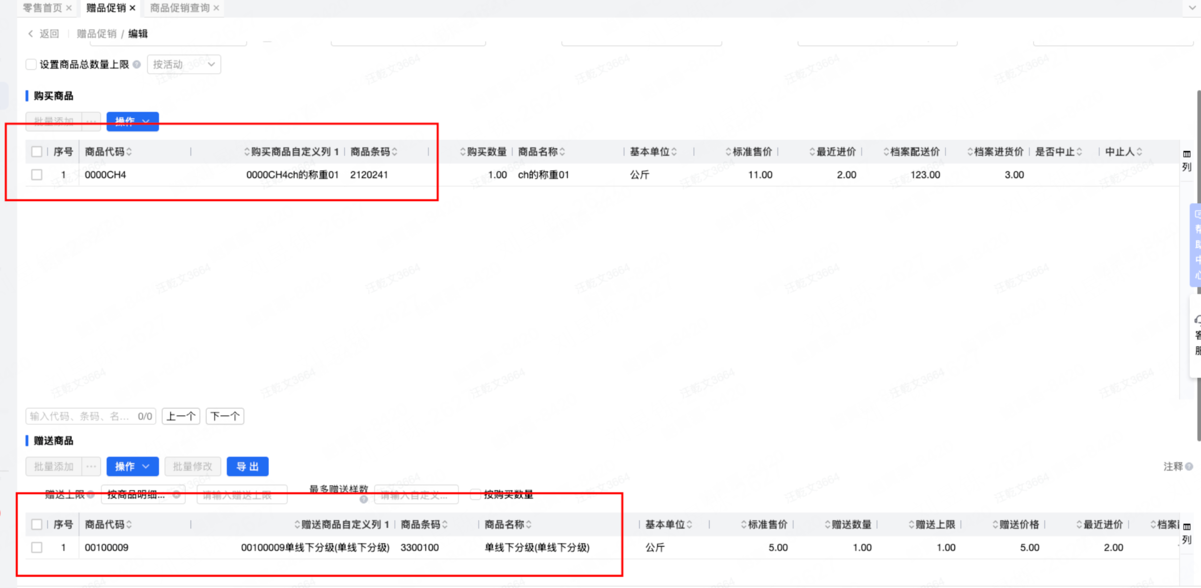 做赠品促销,今日促销页面查不到赠送商品,只能查到条件商品。商品促销查询有相同问题
