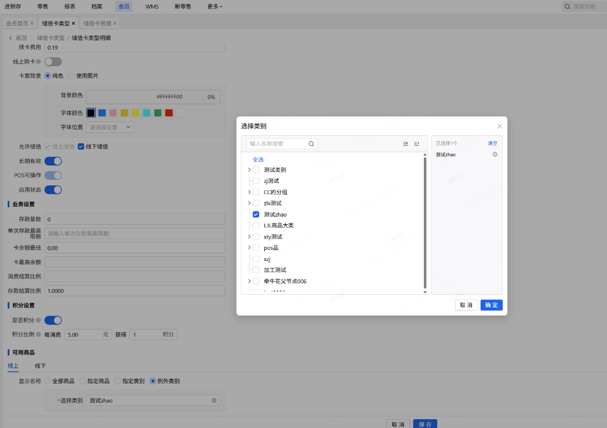 全渠道会员-储值卡可用商品支持线上设置例外类别