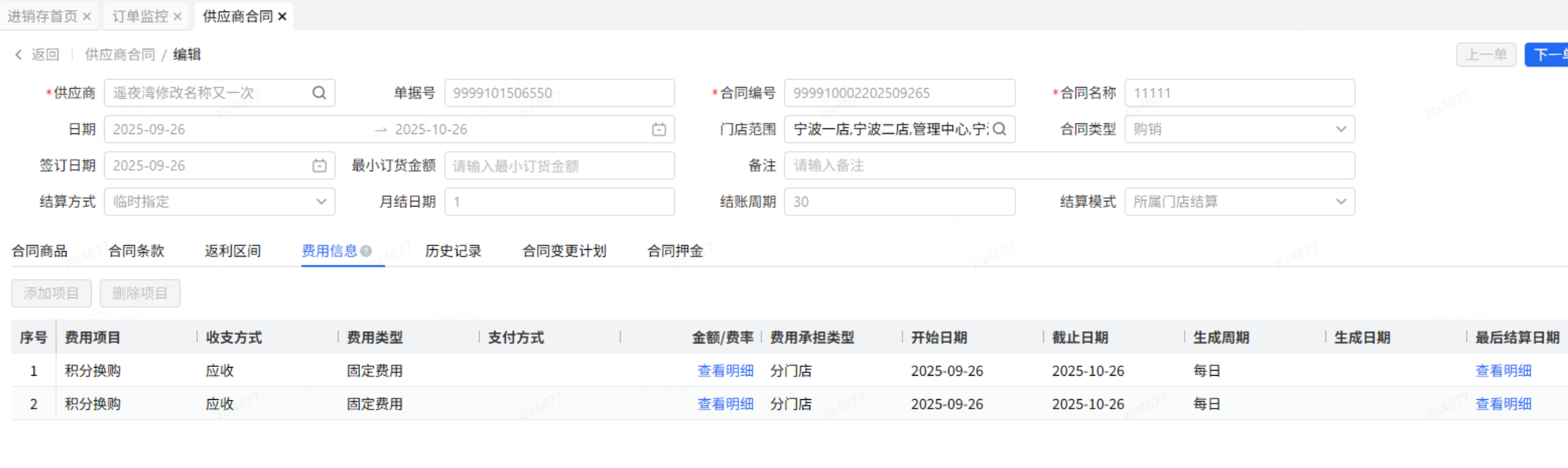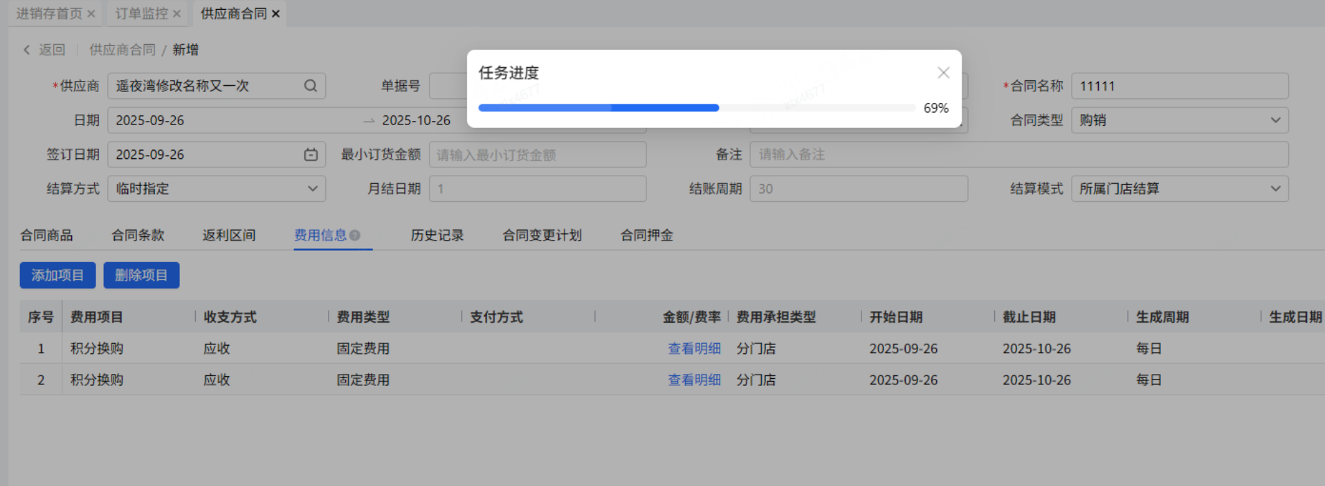 乐檬进销存 - 供应商合同费用信息支持添加相同判断逻辑优化