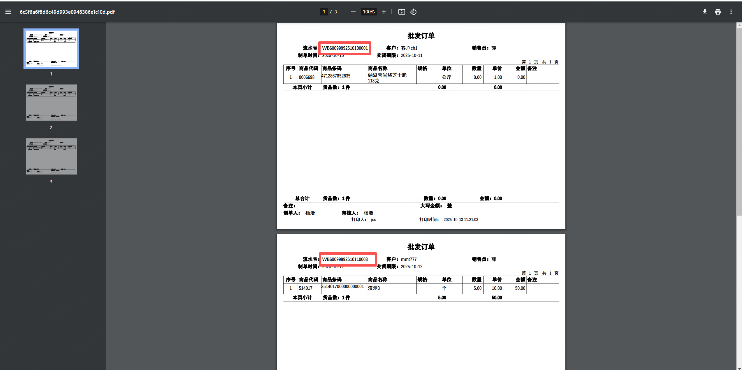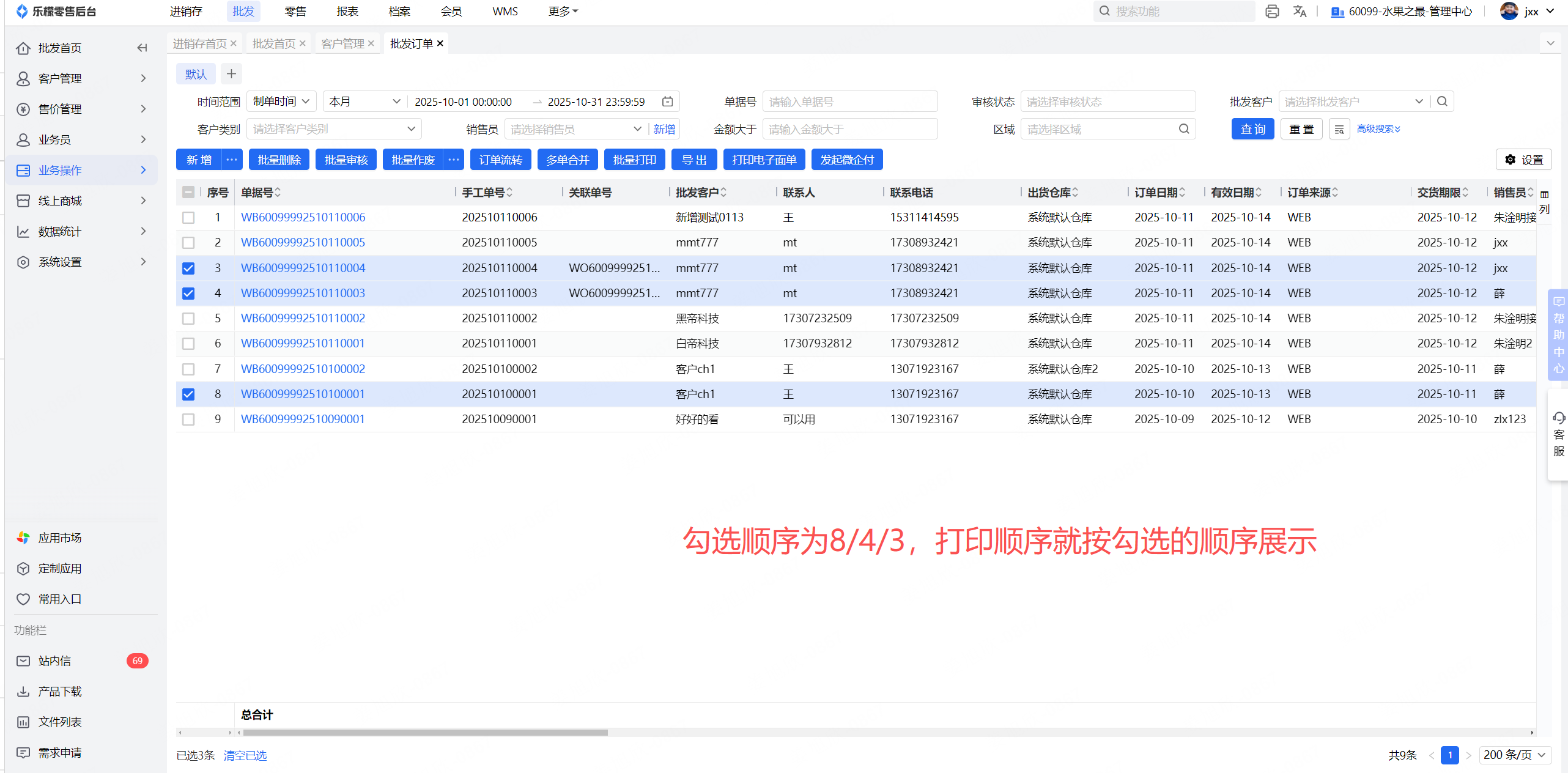 乐檬商贸 - 批发订单、退货单、退货申请-批量打印支持按照勾选单据的顺序打印