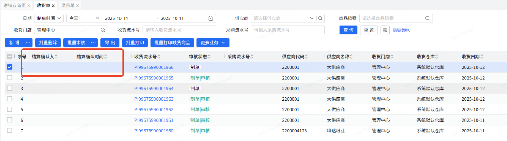 收货单第一次做了结算确认,有了结算确认时间,财务已经付完款了,第二次不小心在点了结算确认,结算确认时间会更新,希望结算时间可以固定只有第一次的结算时间,在次结算确认时间不会更新
