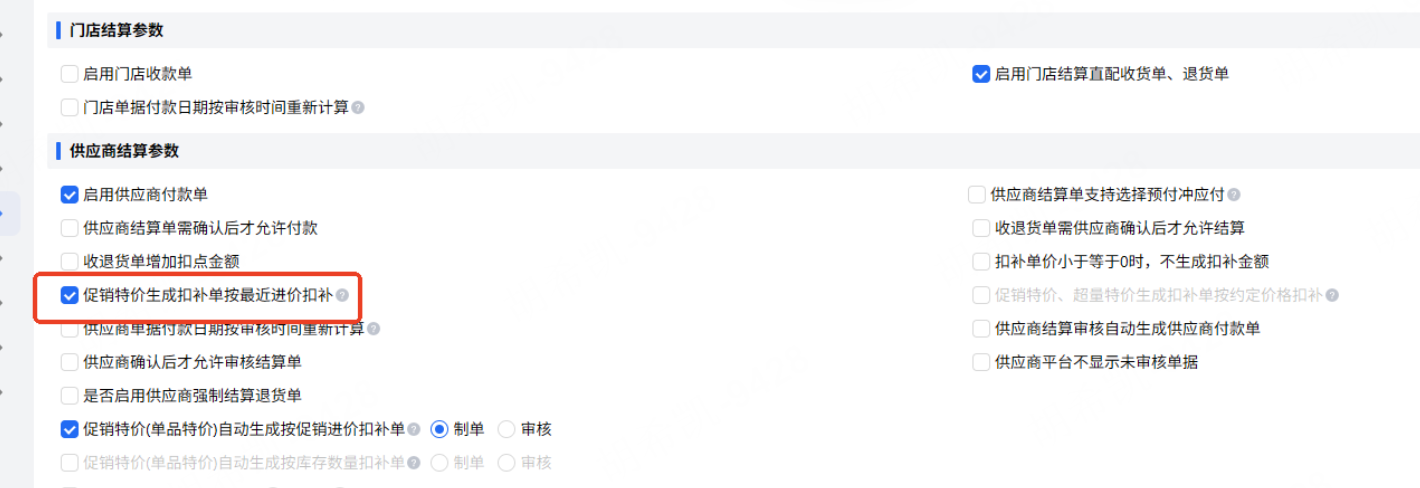 仅开启参数“促销特价生成扣补单按最近进价扣补”才显示,否则按钮隐藏
