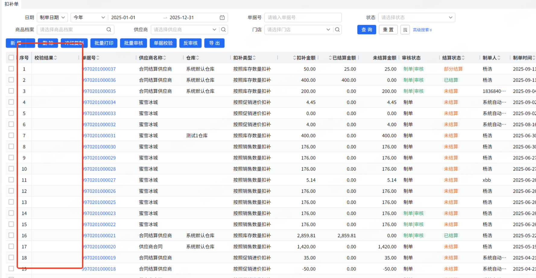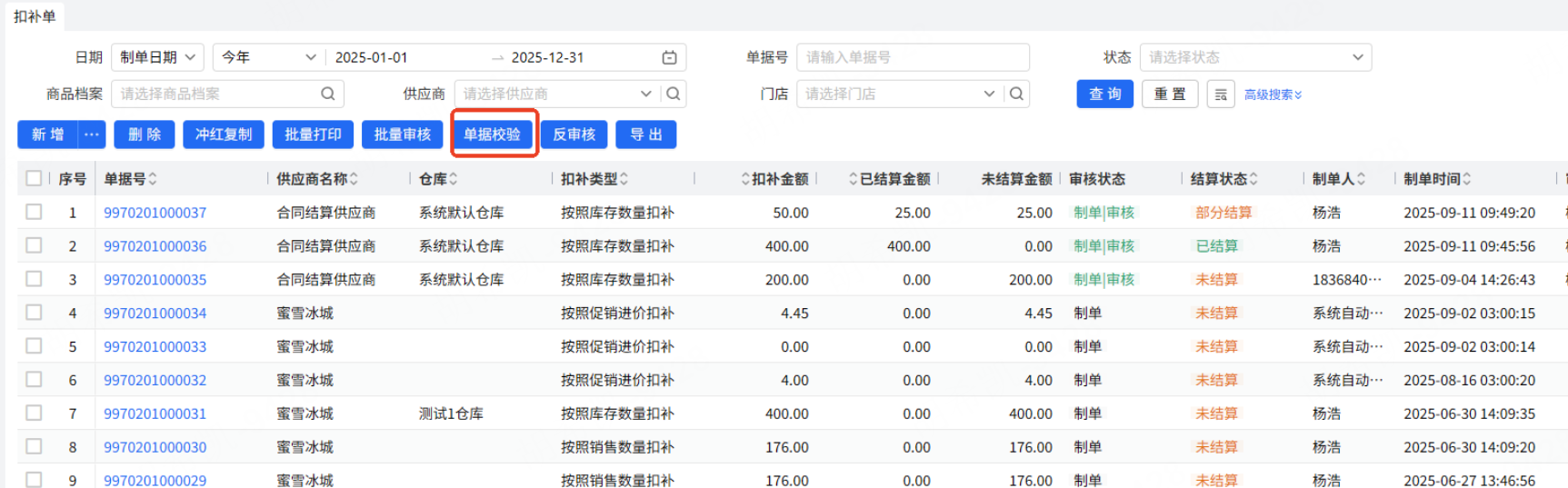 乐檬进销存 - 扣补单增加单据校验功能