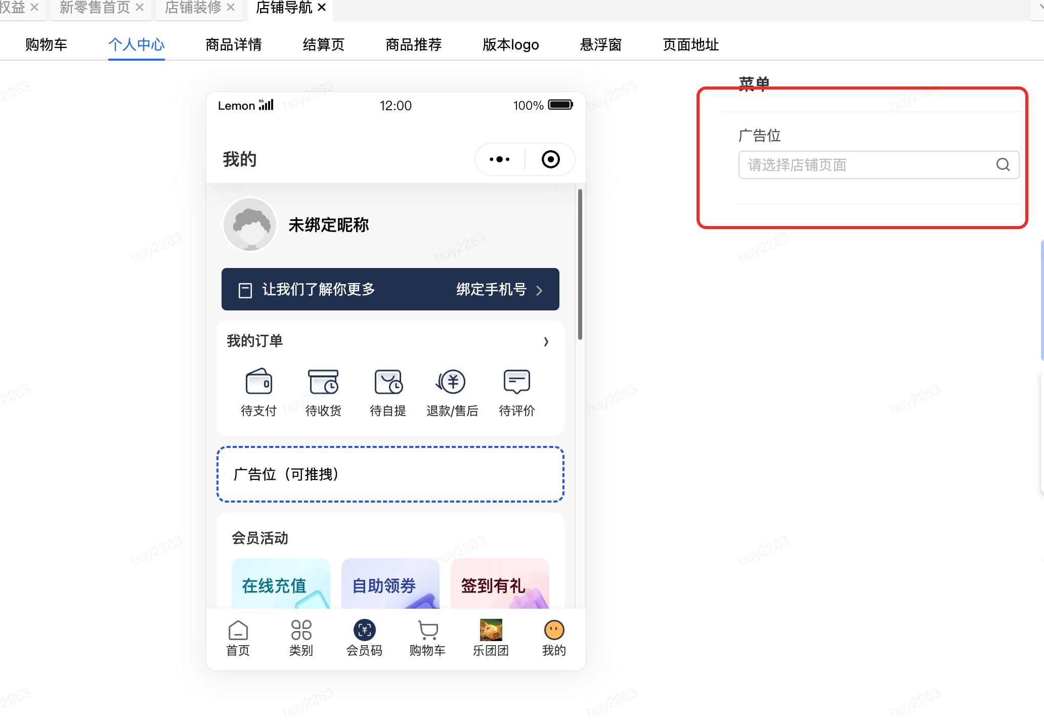 乐檬新零售 - 小程序个人中心支持展示自定义内容