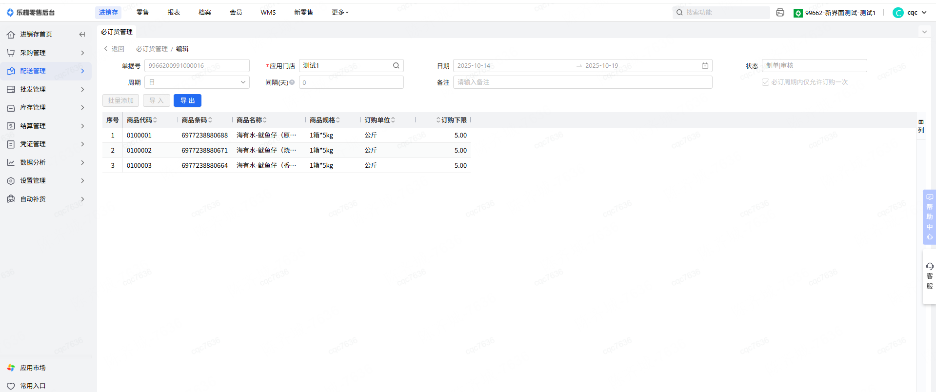 👉【操作路径】:进销存-配送管理-基础设置-必订货管理