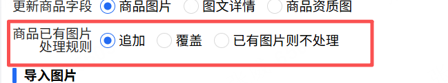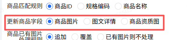 3、选择要更新的字段,支持商品图片、图文详情、商品资质图