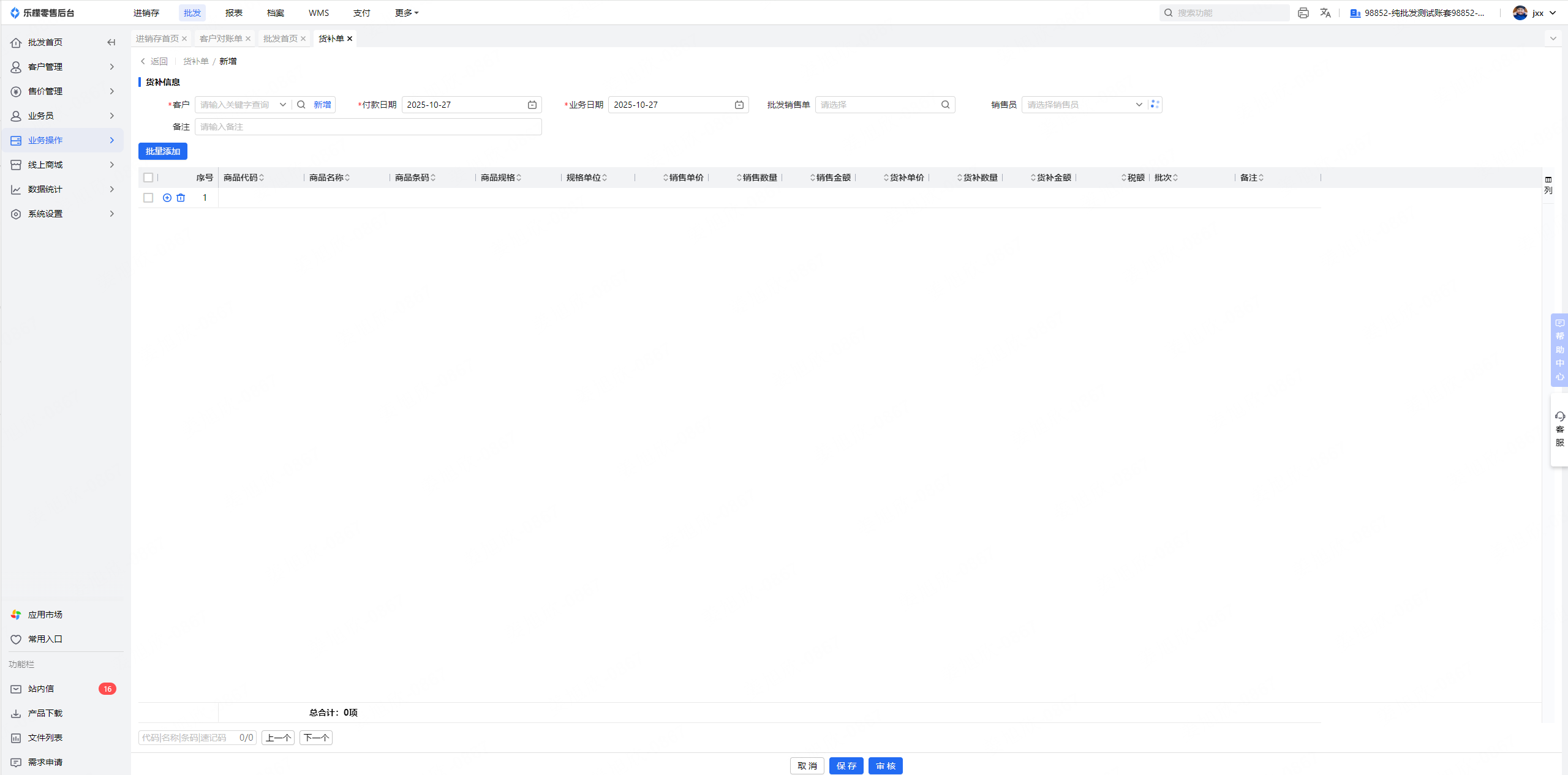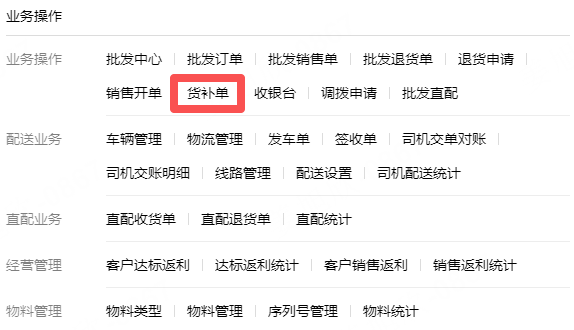 1、业务操作新增一个模块“货补单”,权限:查询、编辑(新增和编辑共用)、删除、审核、反审核;支持按照销售单或者商品的数量进行货补