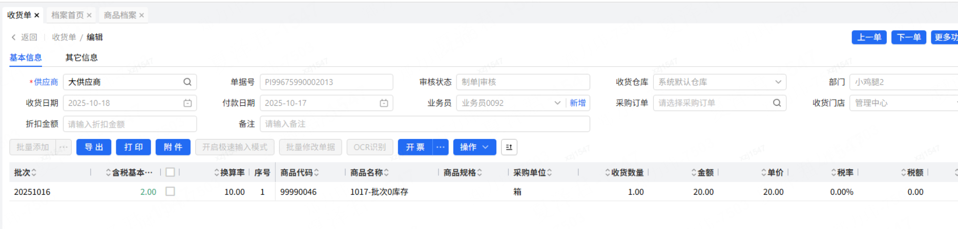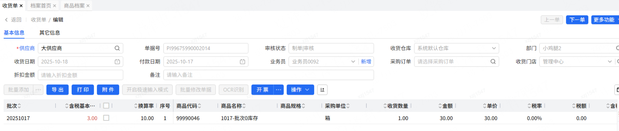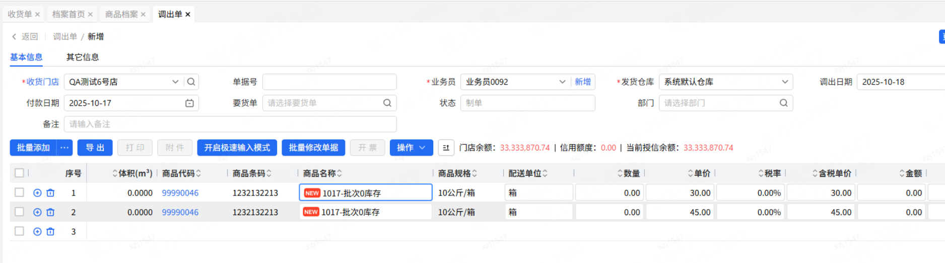 因为客户这边存在某个店有些旧批次的产品要拿回仓库 需要扣除回来 客户这边做的都是负数的调出单冲回来 客户这边商品开的都是锁定配送毛利为0 如果批次存在多个 切无库存的情况下 调出单选择其中一个批次 确认后显示在单据明细中该批次的单价变为了档案的配送价