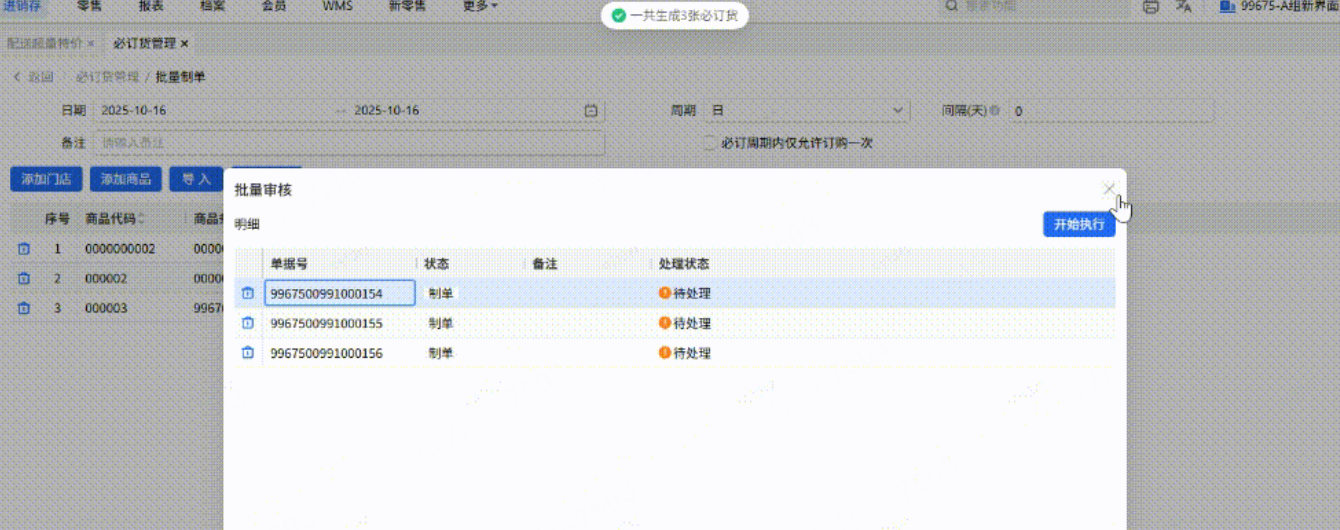 需要注意,若是存在某一个门店商品数量全是0,那么不生成这个门店的必定货单据