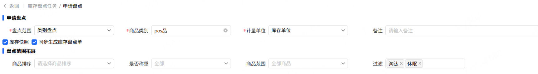 当选项勾选后,那么按门店同步生成一张当前时间的快照,并应用到生成的库存盘点任务
