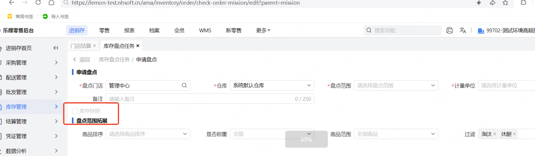 当选项勾选后,那么同步生成一张当前时间的快照,并应用到生成的库存盘点任务