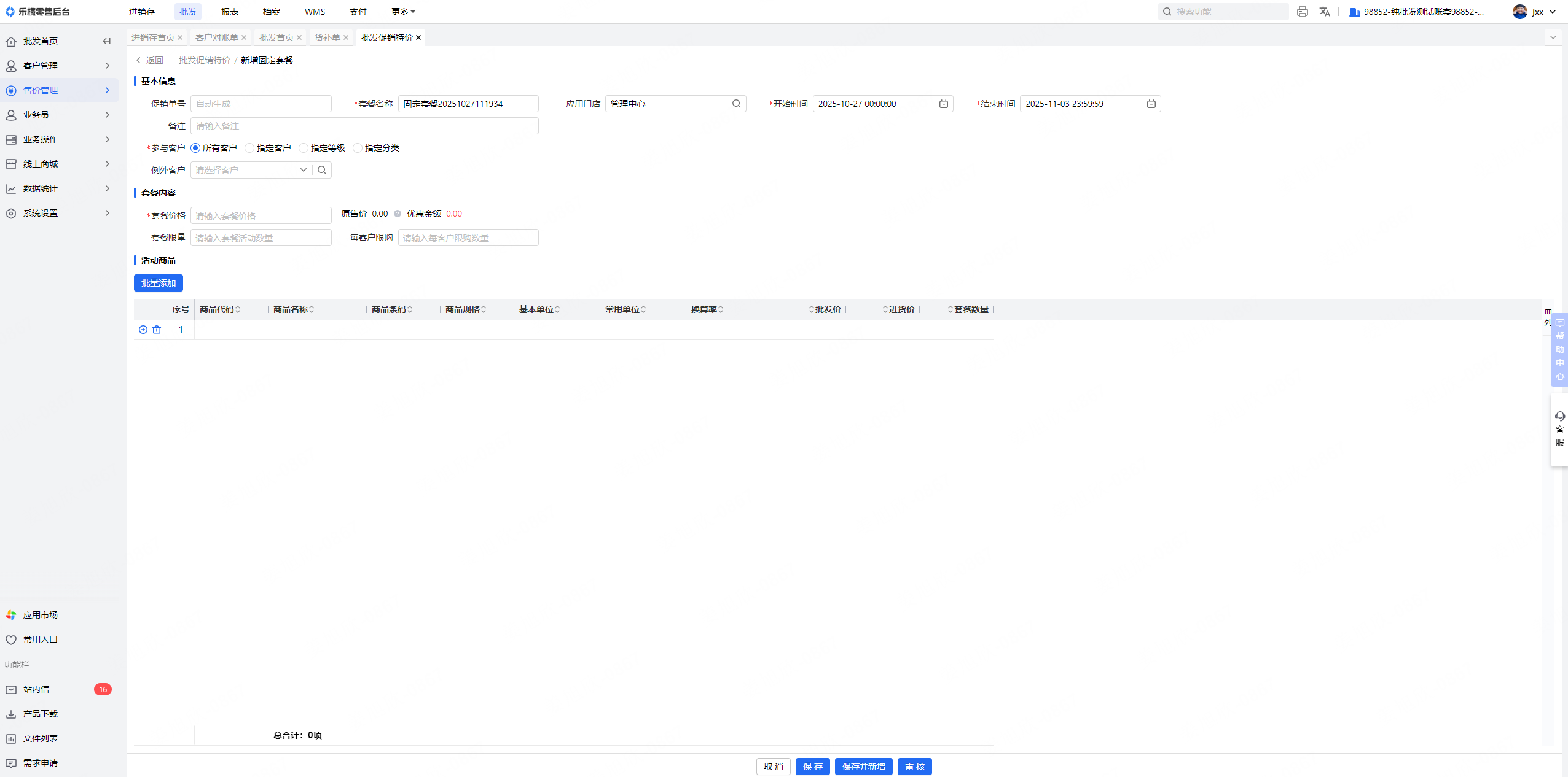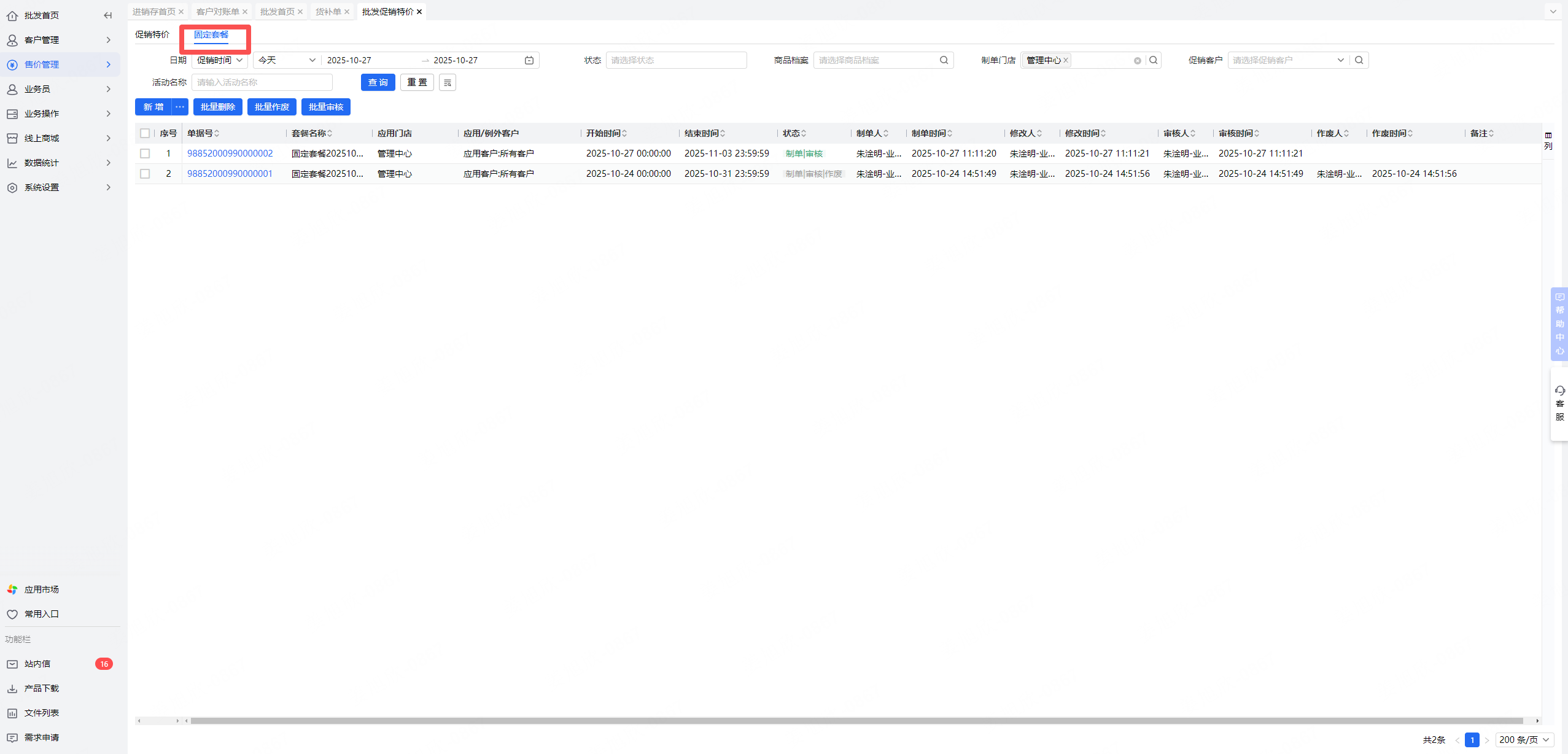 功能路径:WEB-售价管理-批发促销特价-固定套餐