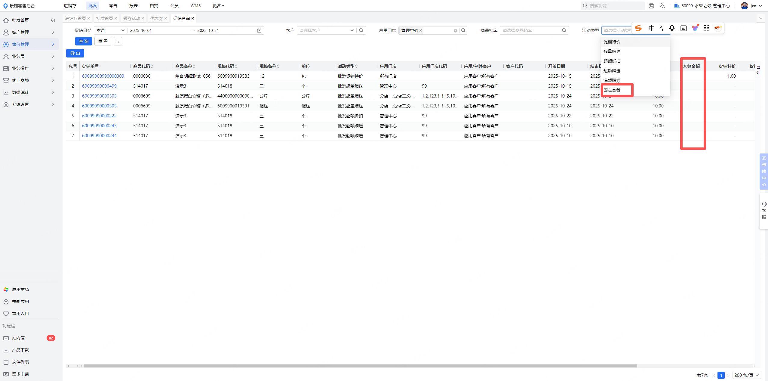 6、促销查询-查询条件-活动类型新增一种类型“固定套餐”;促销查询列表-活动类型新增一个枚举值“固定套餐”;促销查询列表新增一列“套餐金额”,根据促销单号展示对应套餐金额