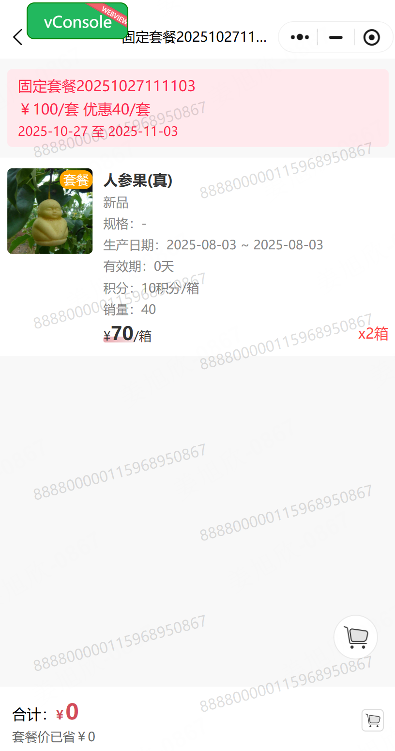 8、固定套餐商品根据“促销活动商品可享受积分”开关来判断是否参与积分计算