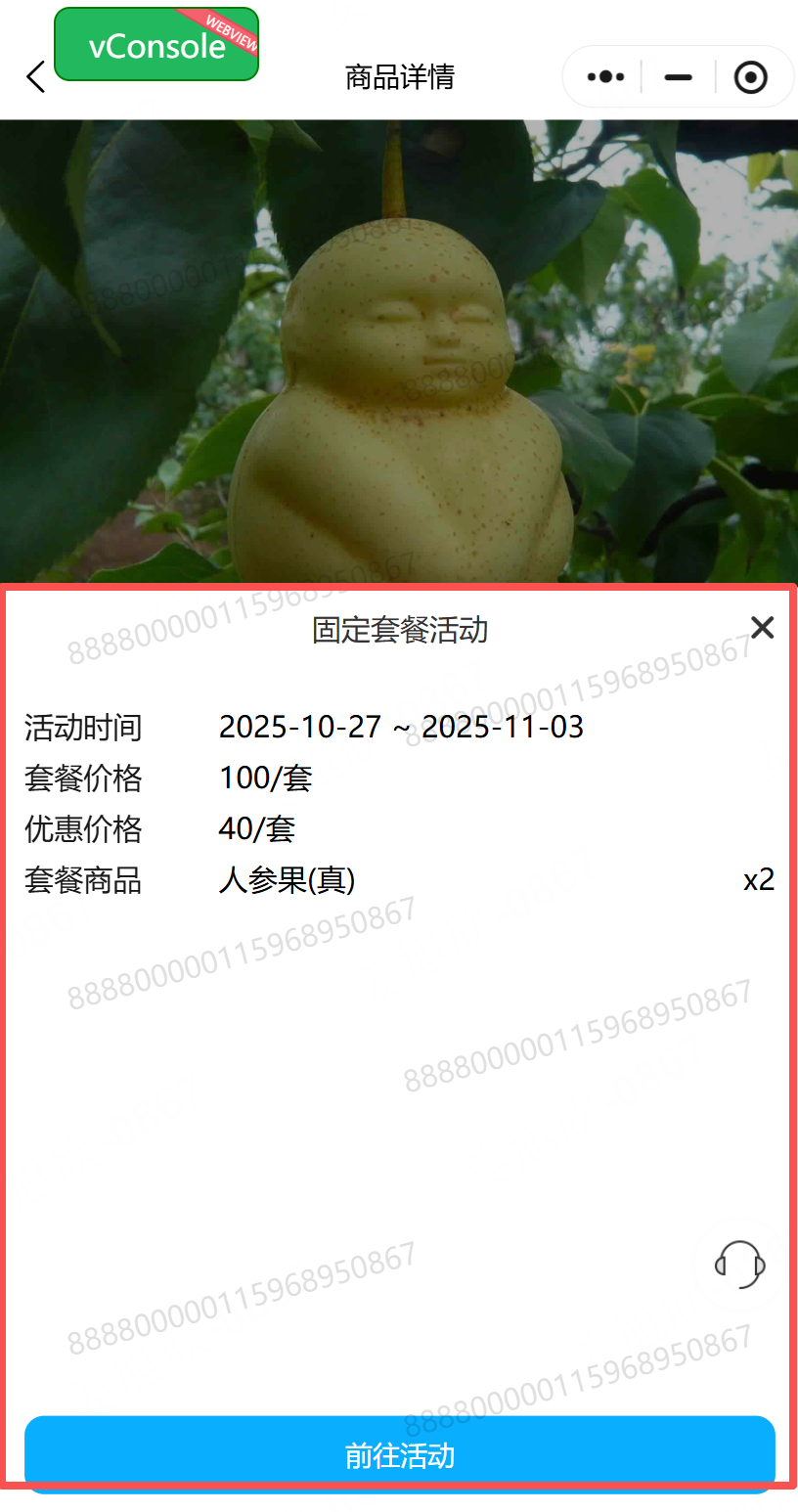 3、商品详情-固定套餐活动术语添加;点击前往活动跳转至固定套餐详情
