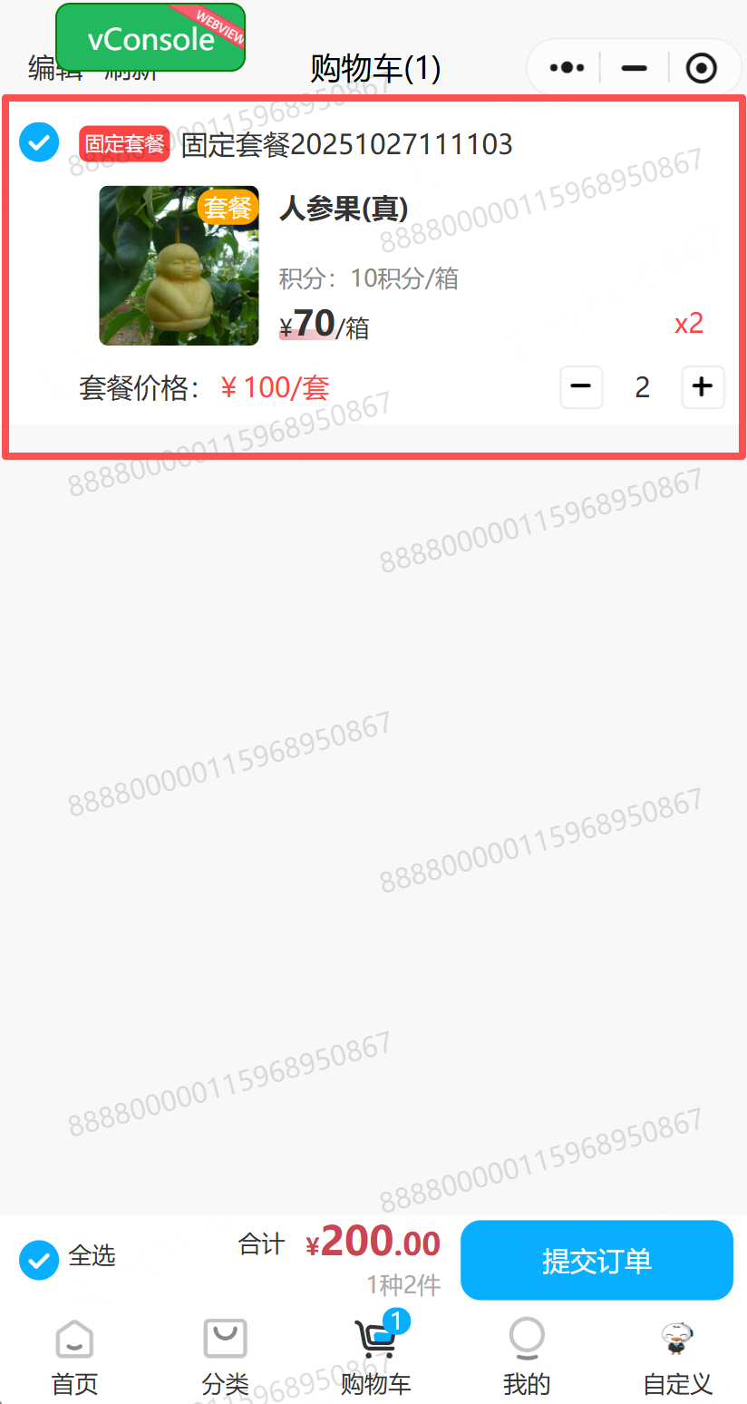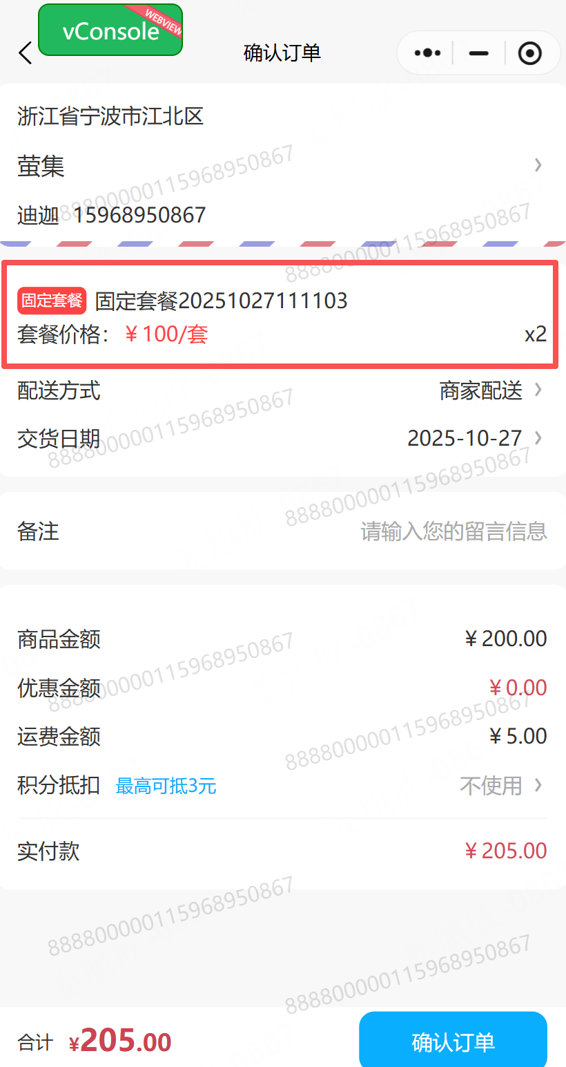6、提交订单时套餐商品金额为套餐金额,不填充优惠金额;提交订单、我的订单页面查看套餐商品样式