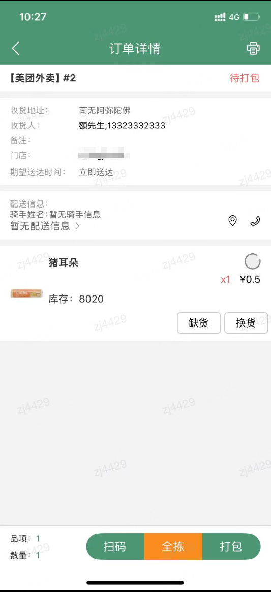 要点:商家线上订单较多,对于库存实时性要求较高,在配货时发现库存不足时,需及时补货。