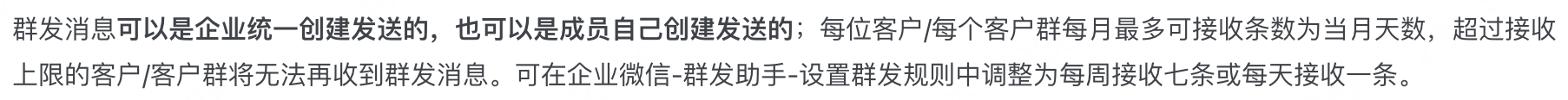 为解决企业微信客户群群发、客户私聊群发等场景,受到接口的发送条数限制问题,乐檬目前支持通过超级客服进行内容的群发,针对发送条数不做限制