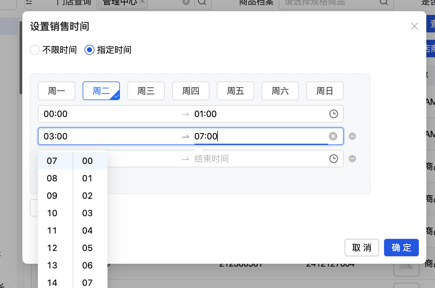 门店商品-设置销售时间,同一天支持设置多个时间段
