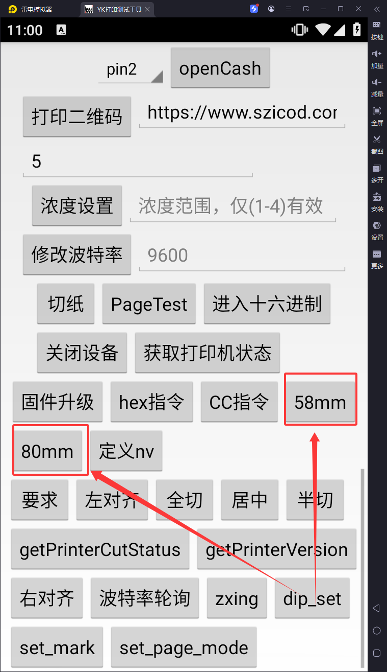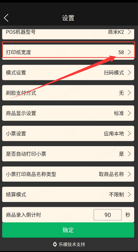 3、滑动至程序最下方,找到58mm、80mm,根据实际纸张宽度进行选择,58mm为窄距小票,80mm为宽距小票