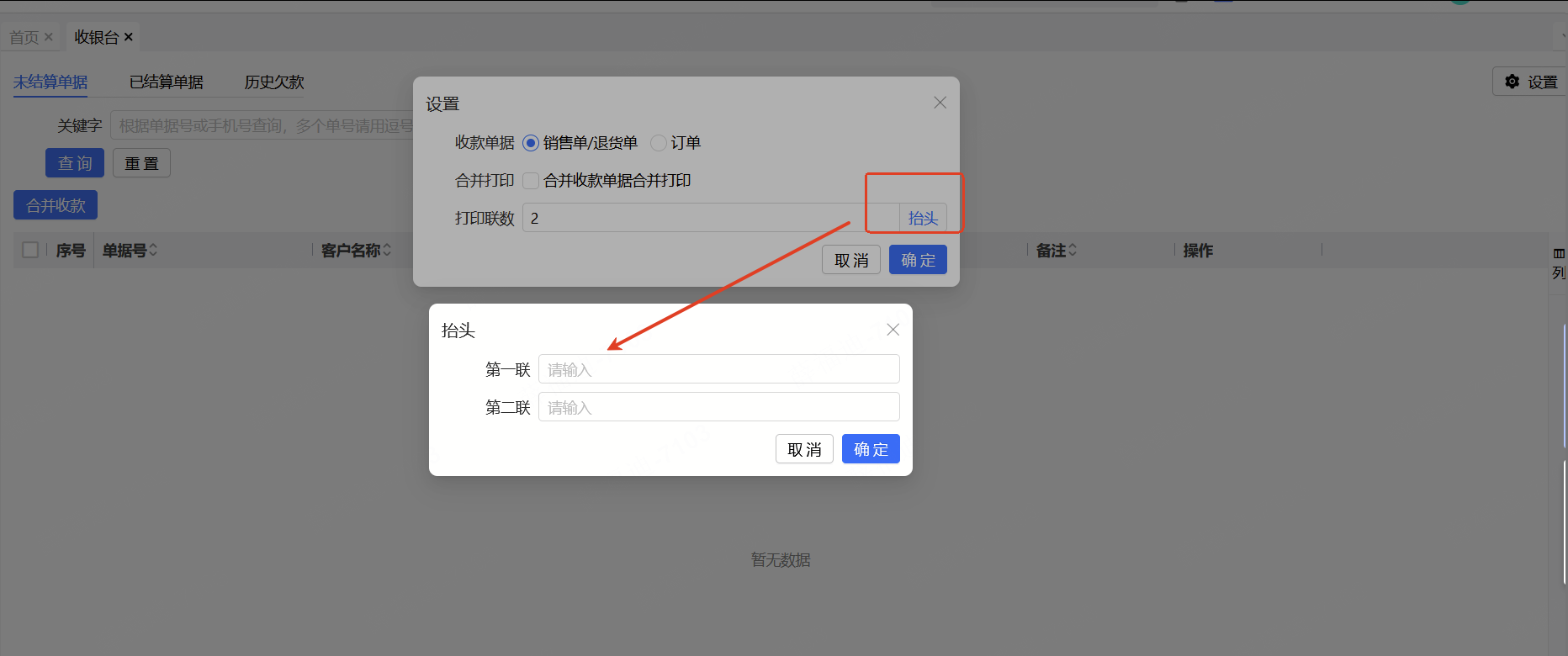 客户在收款打印是需要一下打印多联(财务联、客户联、提货联等),原来打印多联需要在打印机中设置且不能设置不同抬头