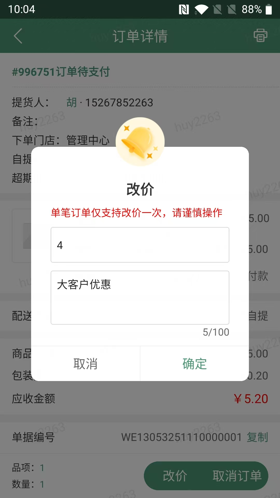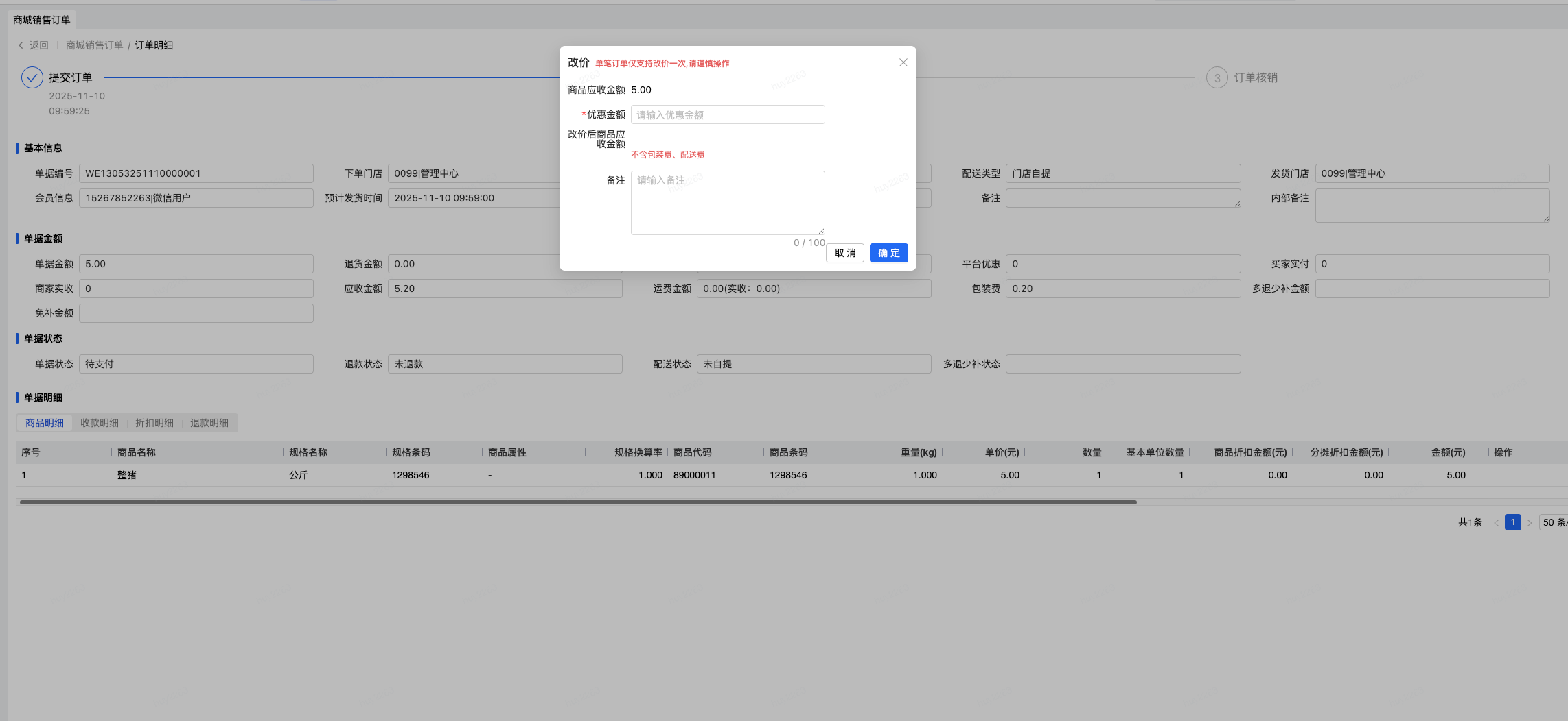 乐檬新零售 - 待支付订单支持手动改价(价格改低)