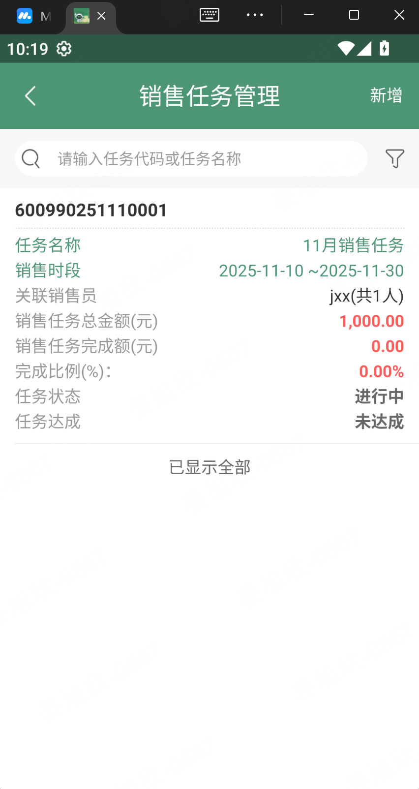 1、首页新增一个“销售任务”板块,展示本人进行中的销售任务和进度
