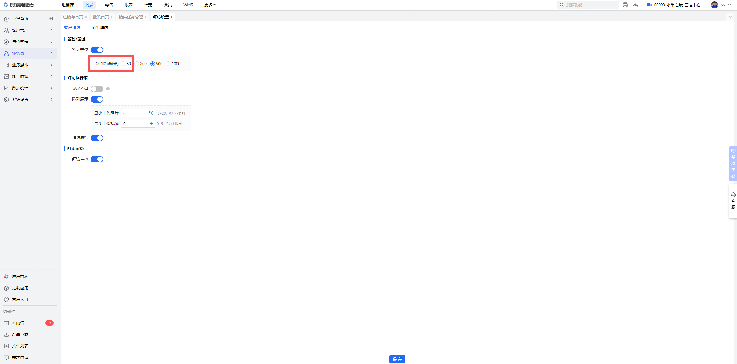 乐檬商贸 - 拜访设置支持签到定位设置50米