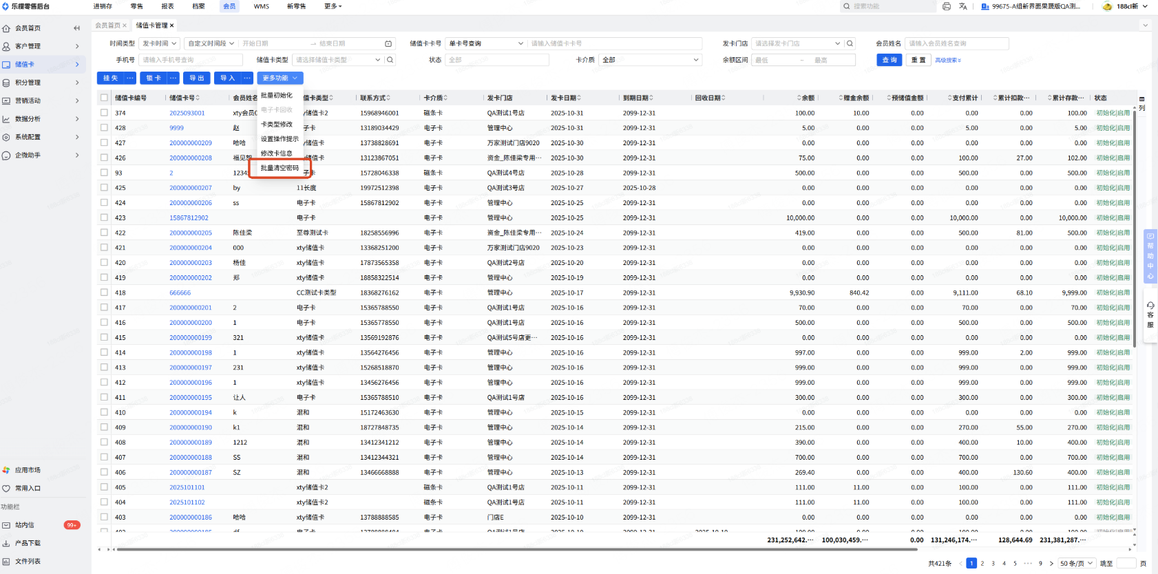 全渠道会员-储值卡管理新增批量清空密码