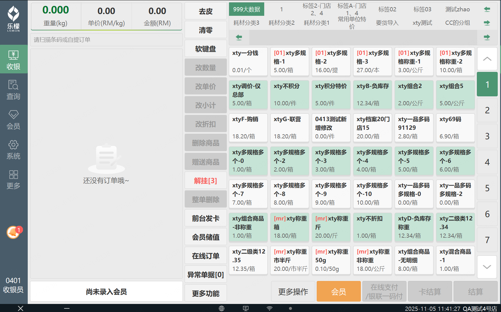 前台操作挂单后,解挂按钮变为红色文本。示例:解挂[x]