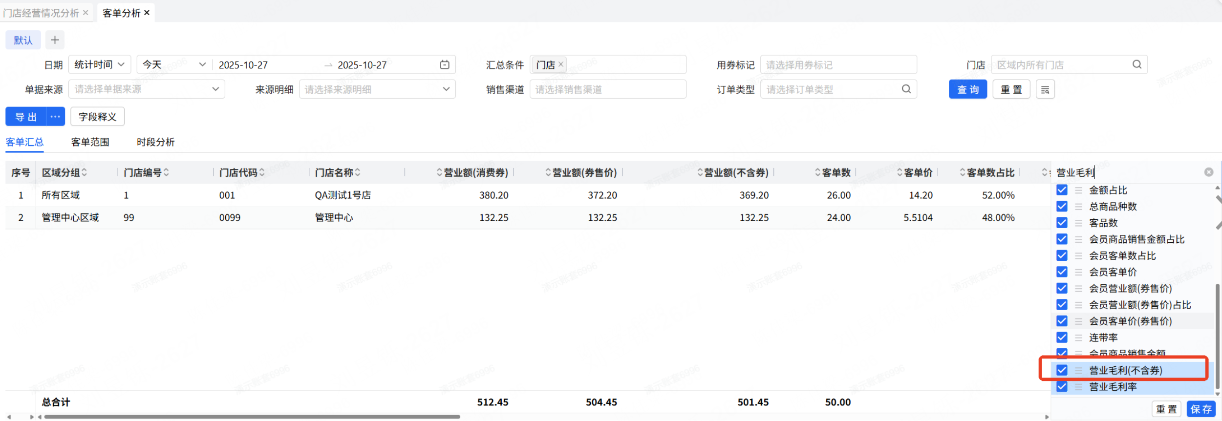 “商品销售毛利”改为“商品销售毛利(券售价)”,“商品销售毛利率”改为“商品销售毛利率(券售价)”