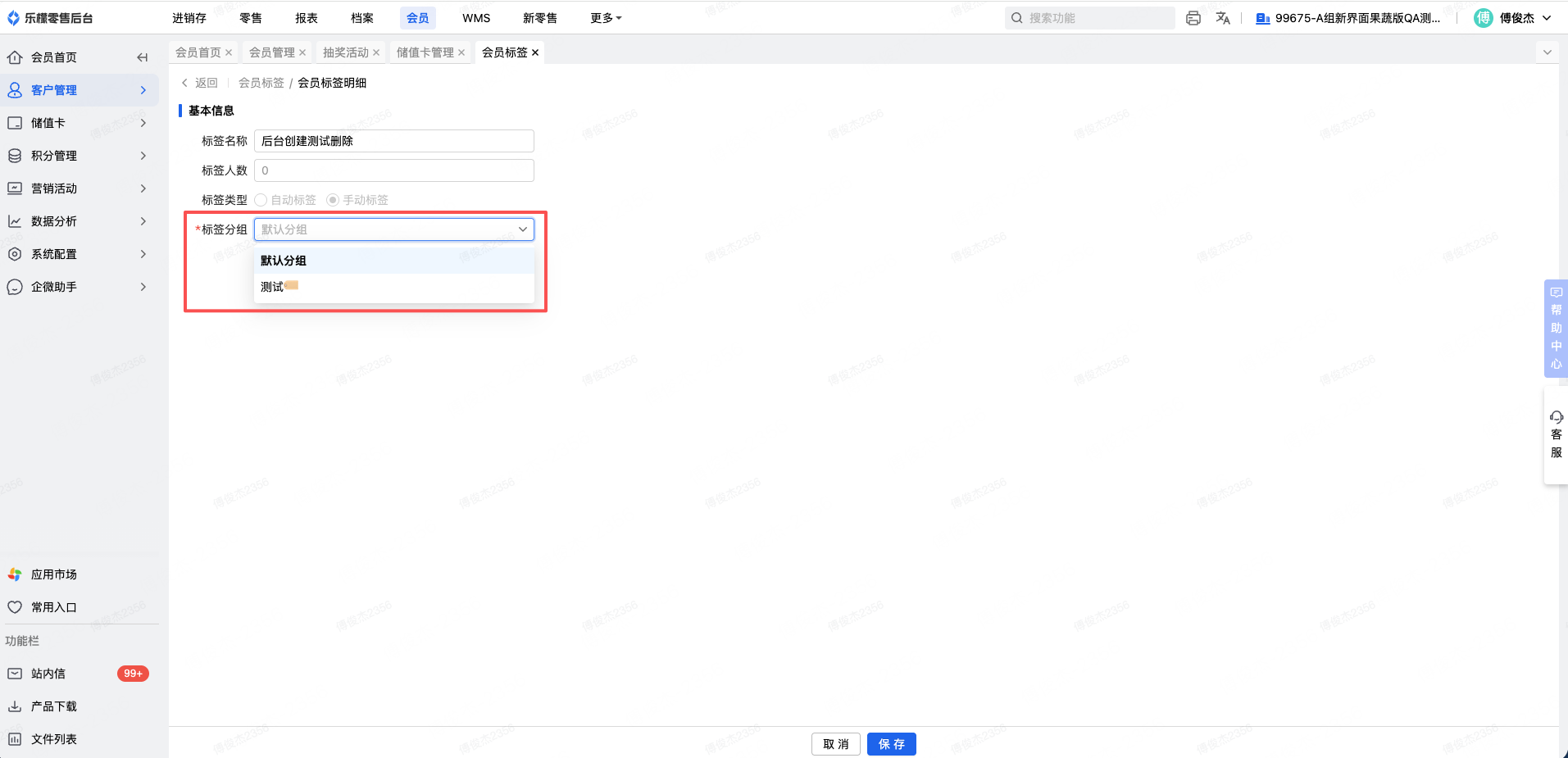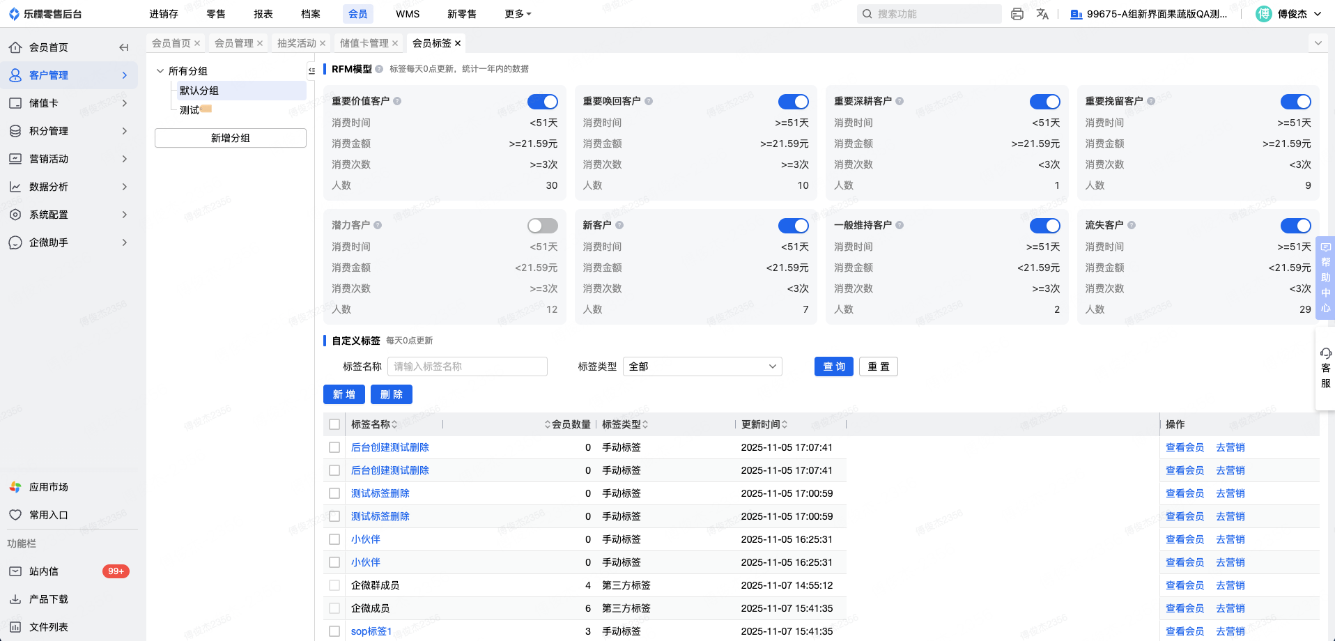全渠道会员-新增标签分组