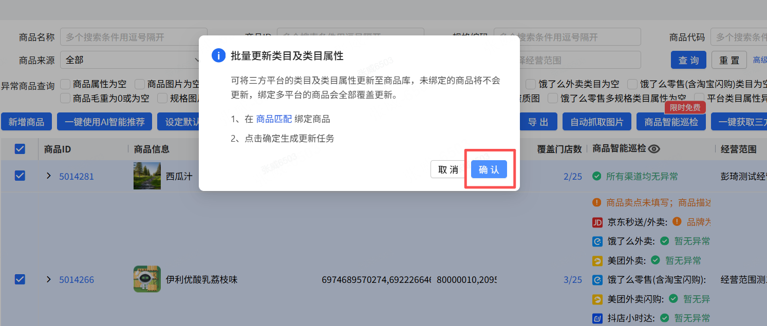 1、为了兼容商家匹配时,未勾选“更新商品类目及类目属性场景”