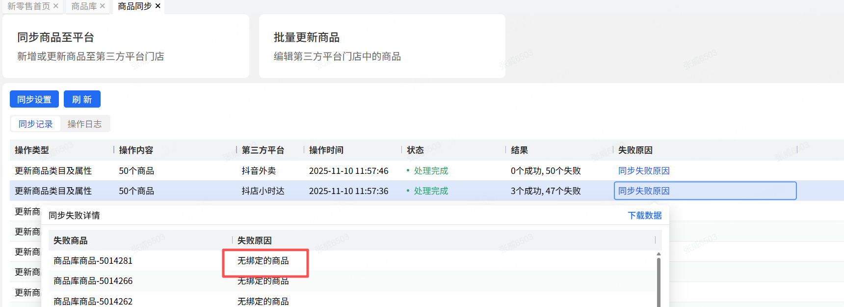 业务流程:读取平台门店商品------->绑定/批量更新类目及类目属性------>同步商品到平台