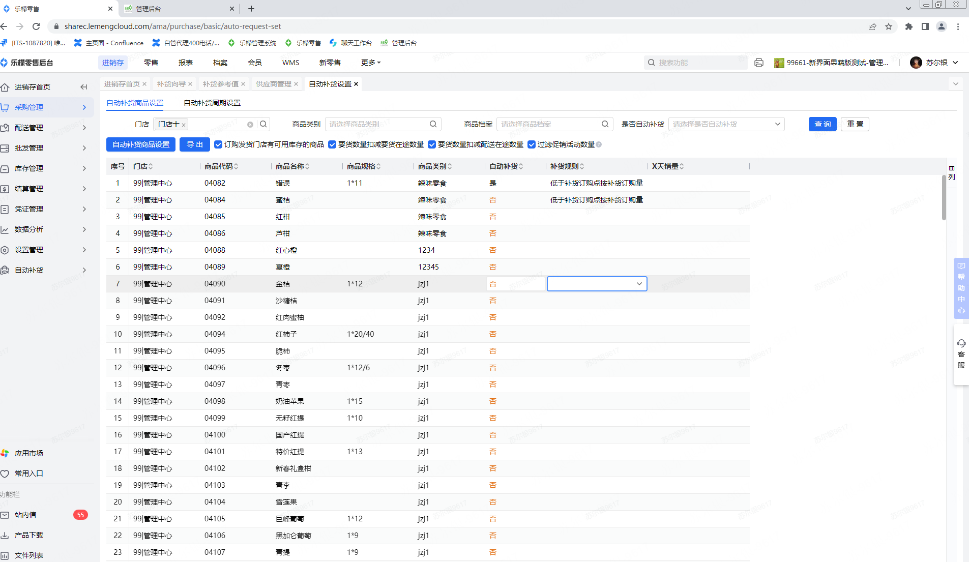 设置好门店之后,可以通过自动补货商品设置,批量设置哪些商品开启自动补货以及自动补货规则