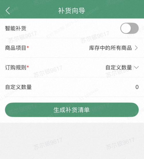 根据补货订购量 | 订购数量=补货参考值中设置的补货订购量 |