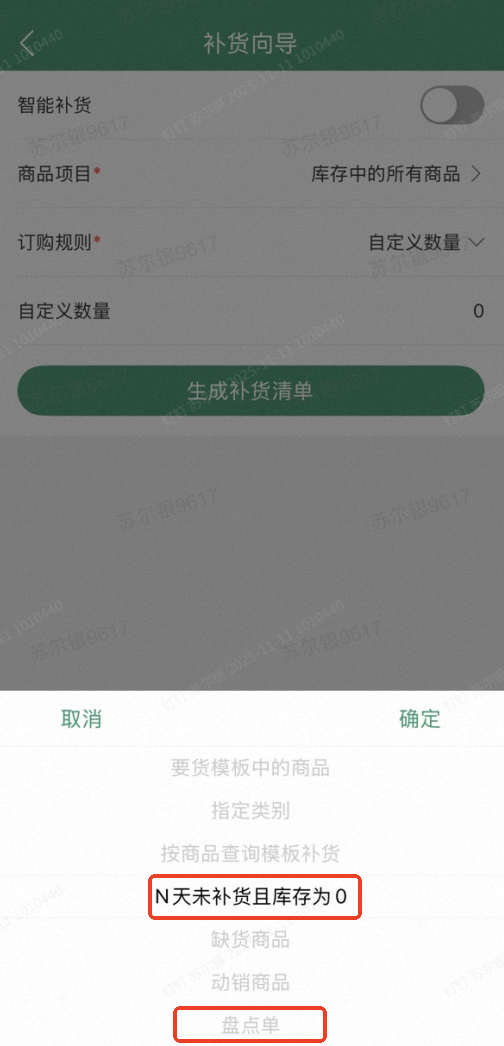 大部分与网页后台的一致。APP上会多两个条件:N天未补货切库存为0;盘点单。