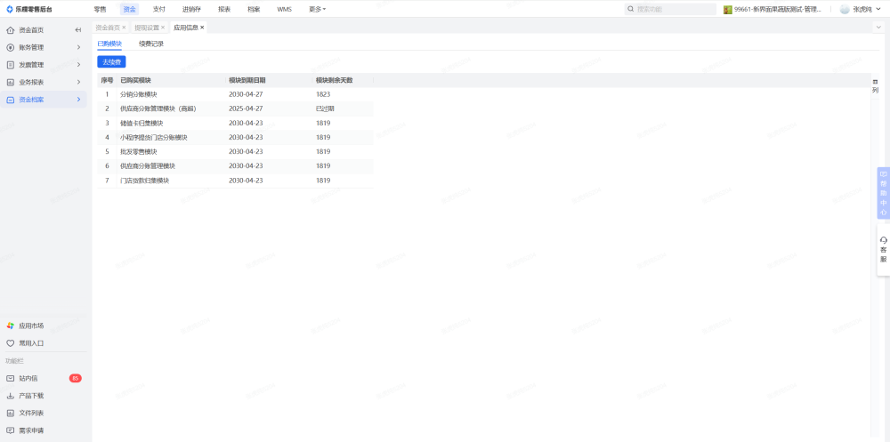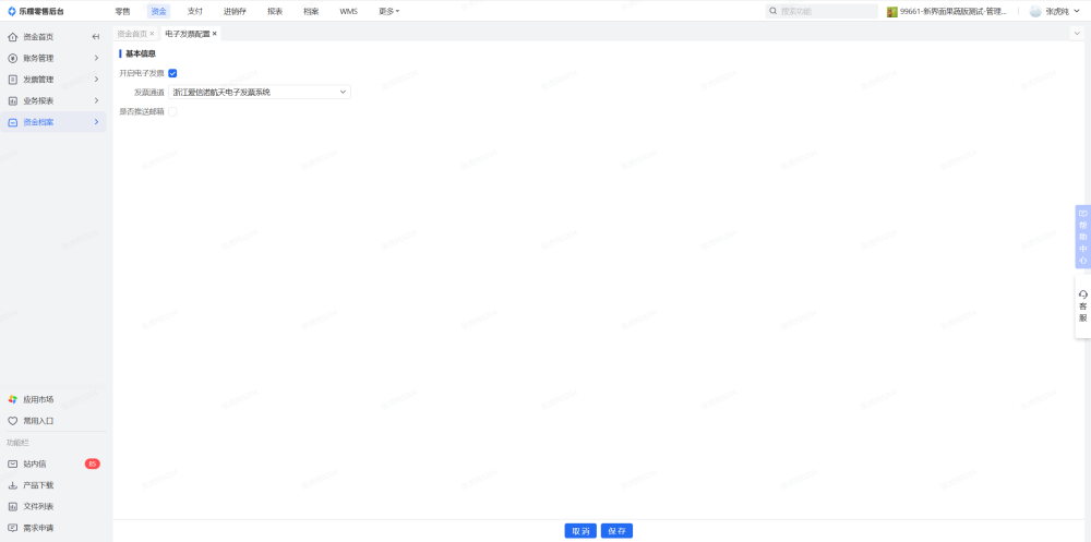 1、档案-用户中心-门店管理,需要开启资金的门店启用资金业务
