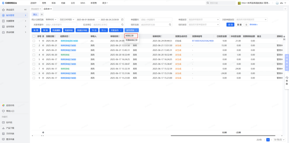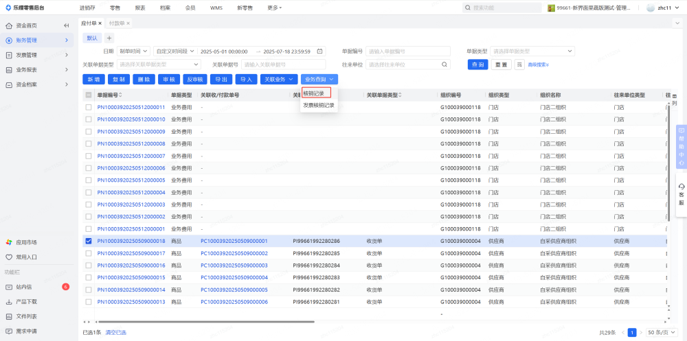 1、查询核销记录:其中核销分为匹配核销与关联核销