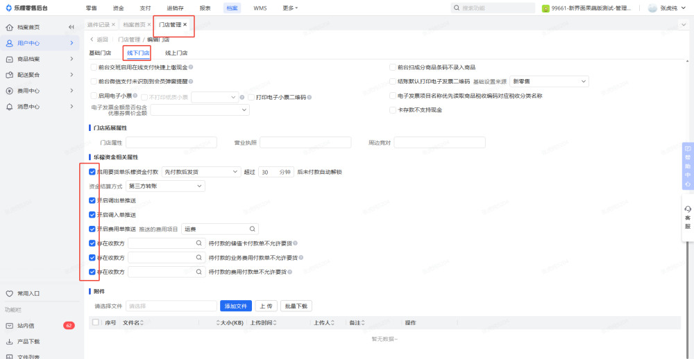 4 档案-用户中心-门店管理,启用门店要货单资金付款,这一步启用后门店要货就需要资金付款了