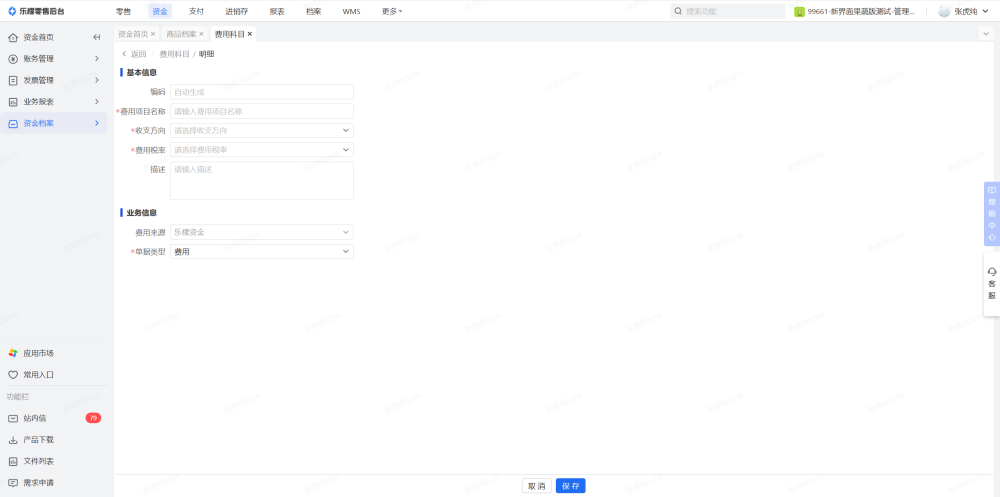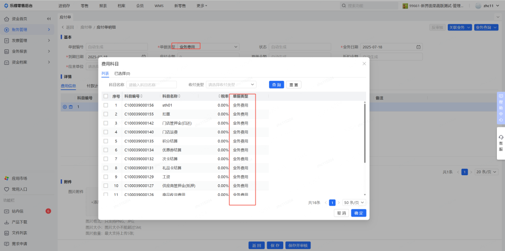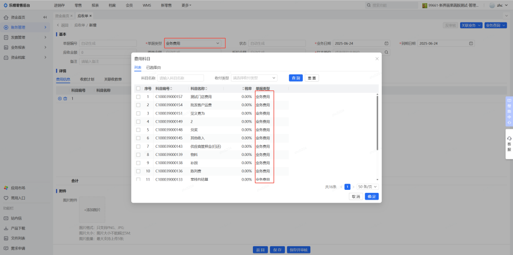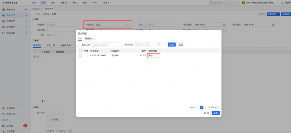 费用科目可同步乐檬零售系统的费用项目,同步过来的费用项目只可修改单据类型