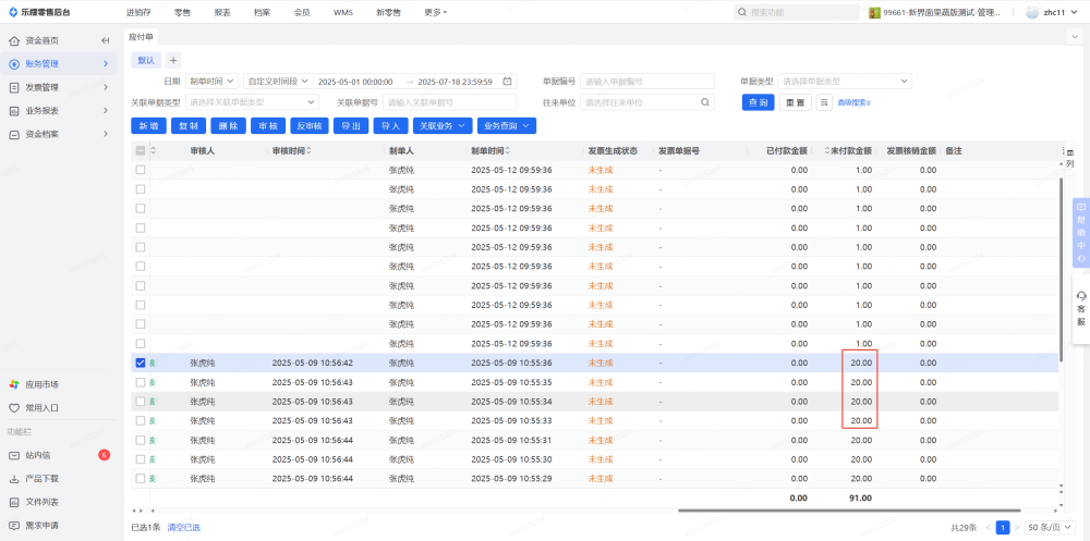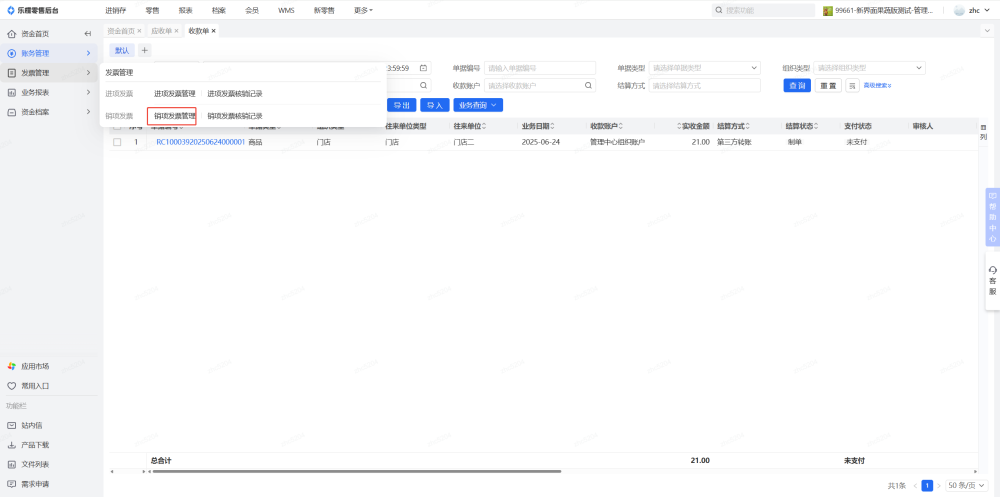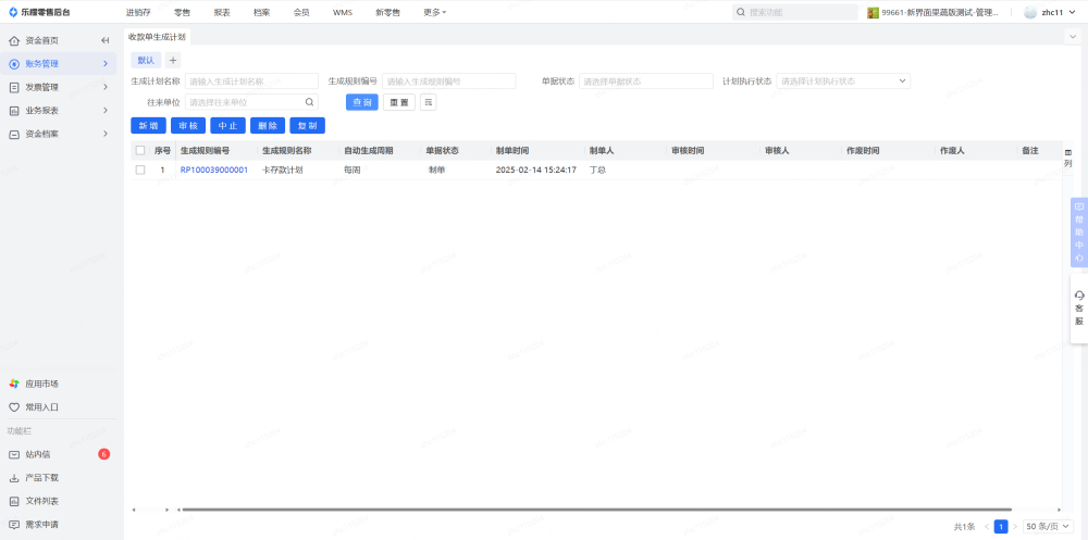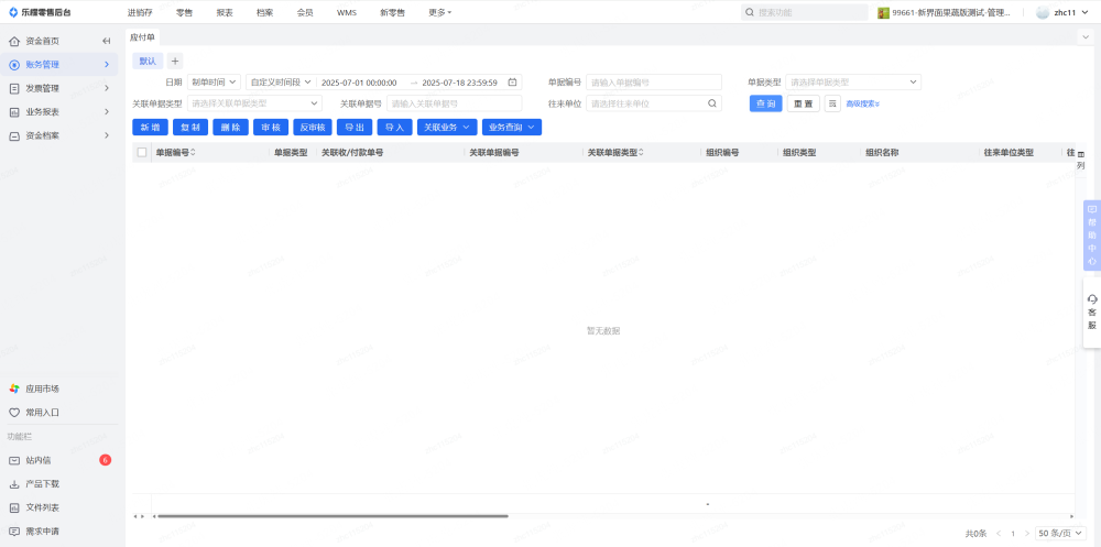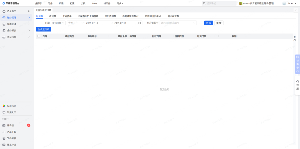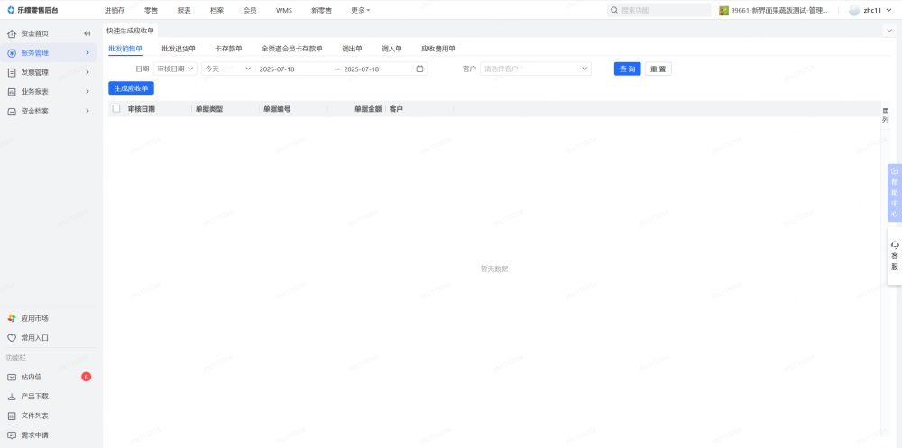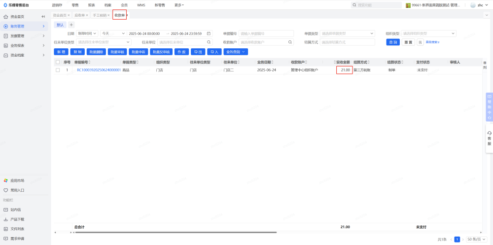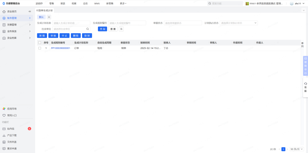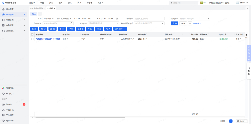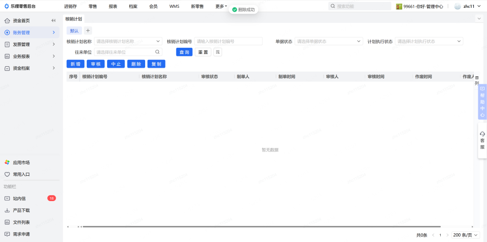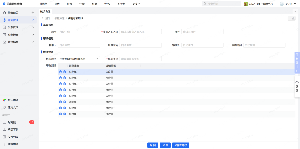 以乐檬零售、新零售中涉及到经济往来的业务单据为依据,生成应收应付单,系统通过(核销方案+核销计划)核销后,可手动或者按计划生收付款单,通过对接的第三方支付平台或者银行,让总部可以更便捷的向外部单位(加盟店、供应商、批发客户)收款和付款。替代传统人工打款、收款确认及对账,提高财务结算效率。