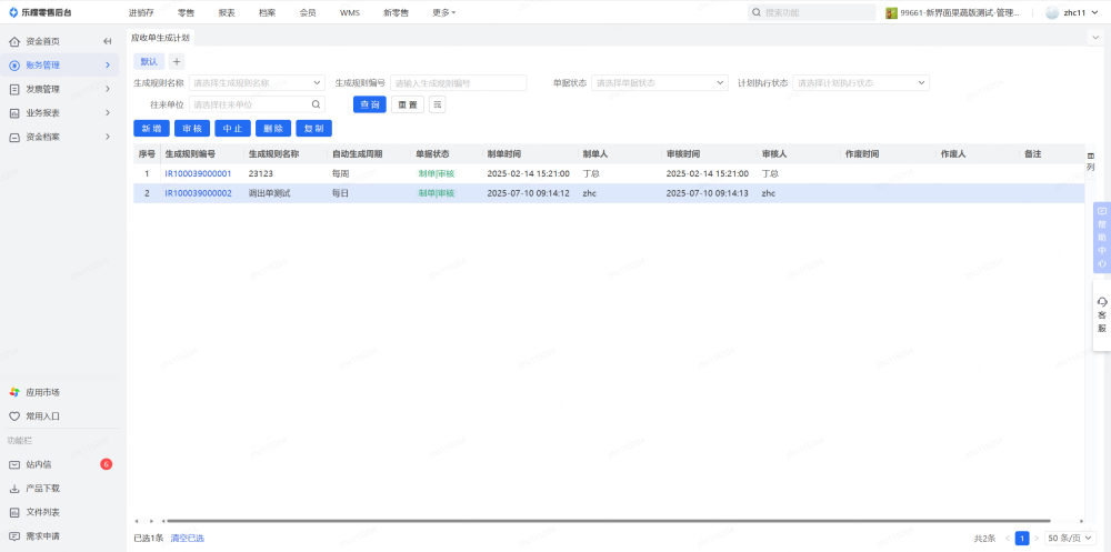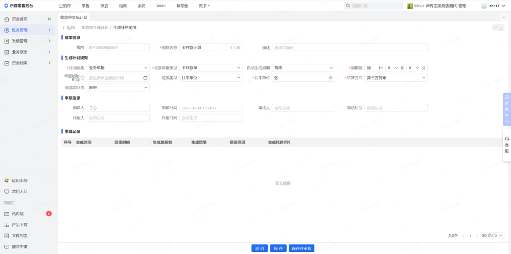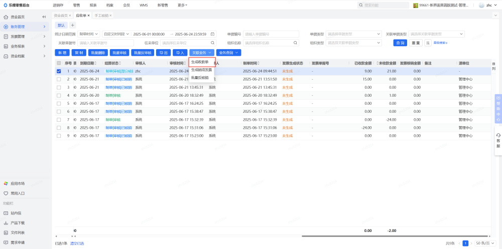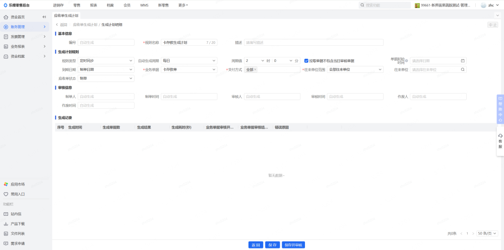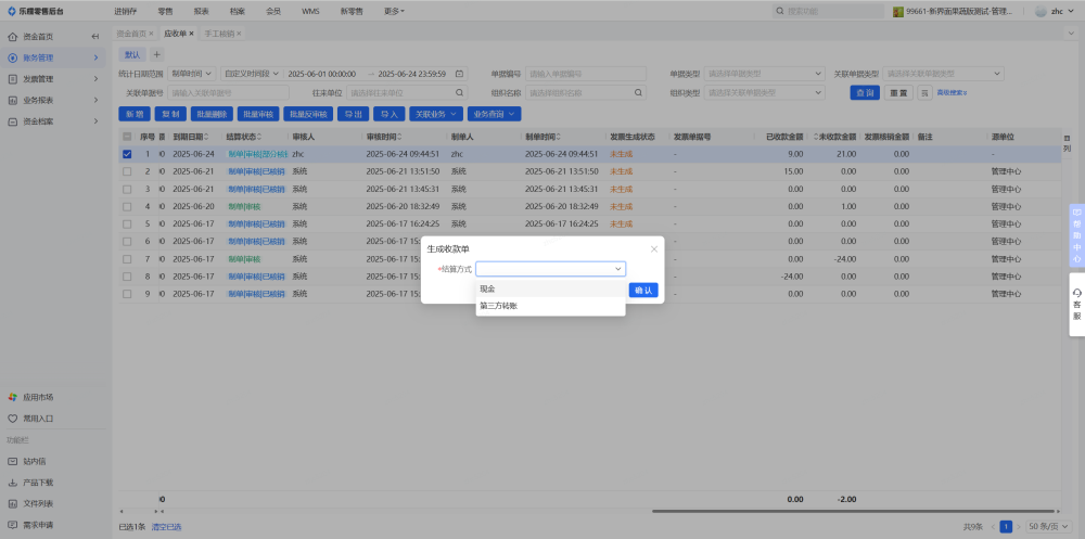 1、 应收单审核时,自动生成结算方式为“第三方转账、现金、....”制单状态的关联收/付款单